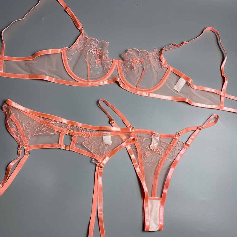 Billionm Fashion Women's Bra Panties Set Push Up Sexy Lingerie Perspective Hollowing Lace Underwear Garters Thong Suit