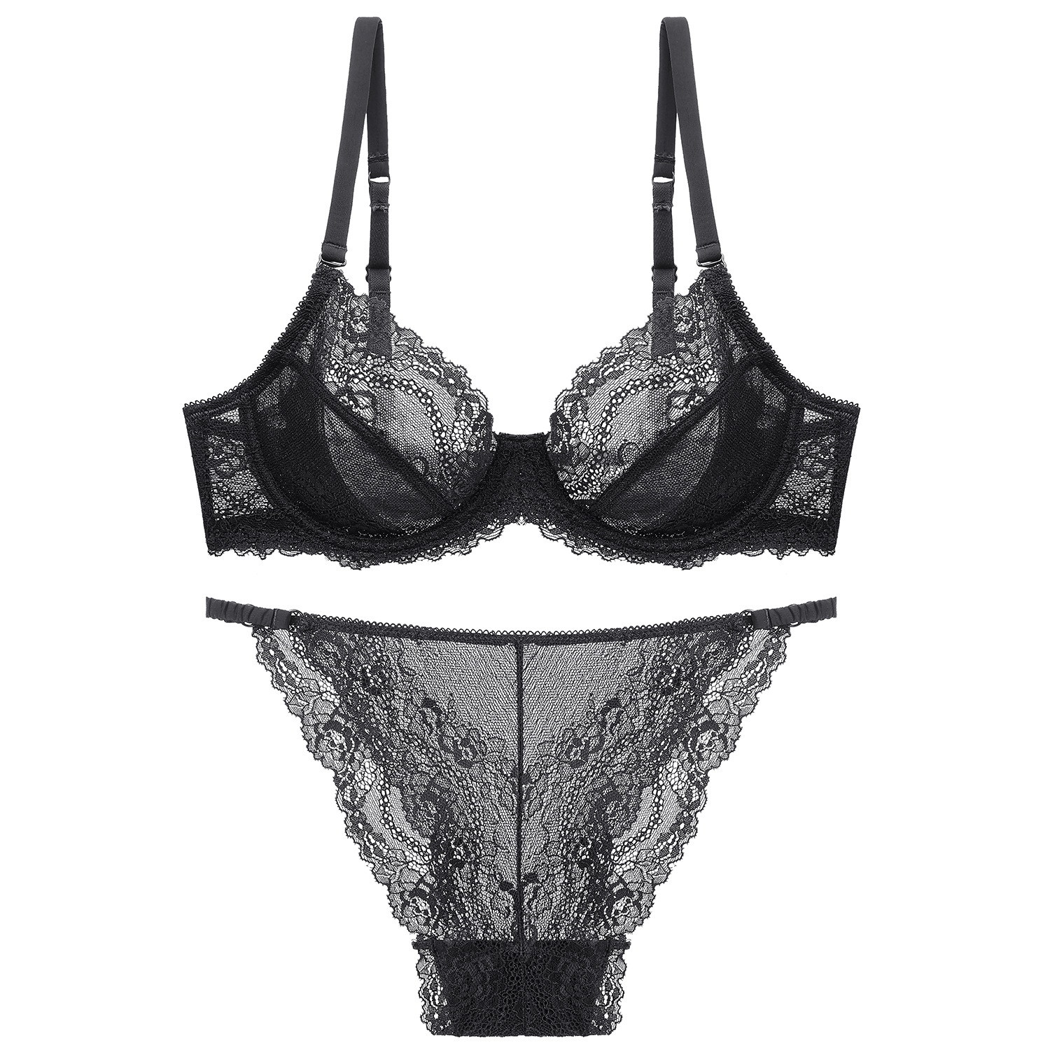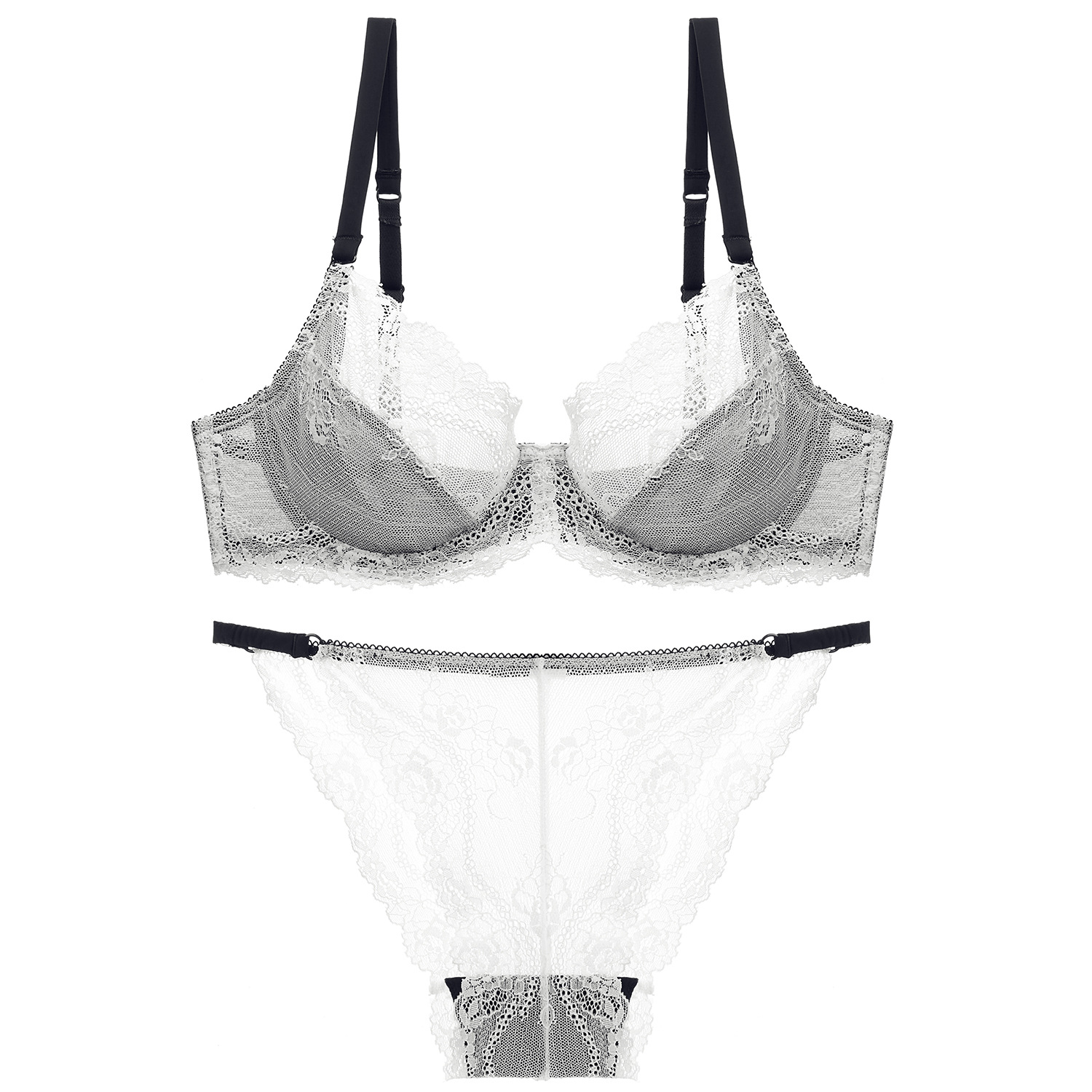 Billionm Billionm Ultra Thin Sexy Underwear Steel Ring Gathered Lace Transparent Lady Bra Suit