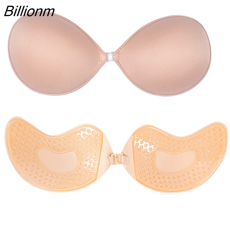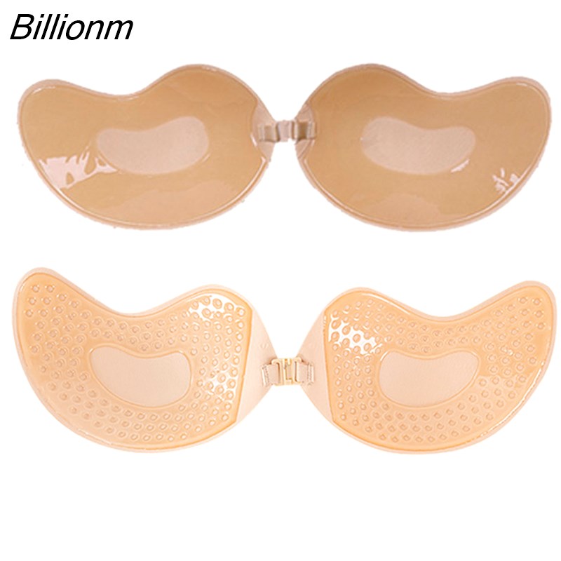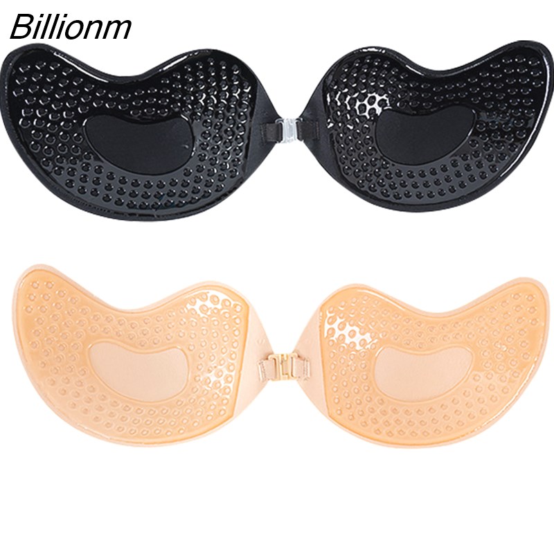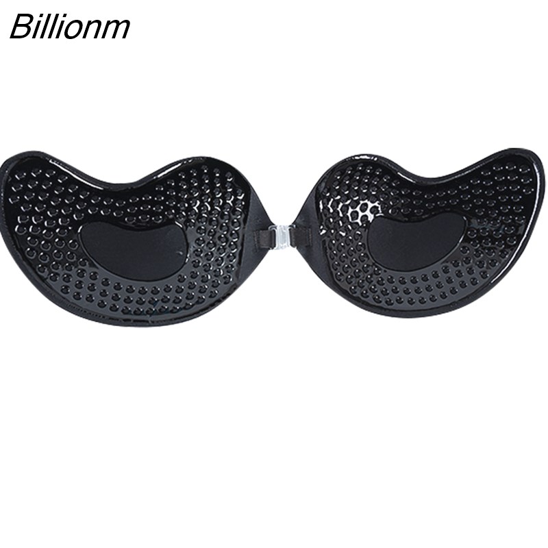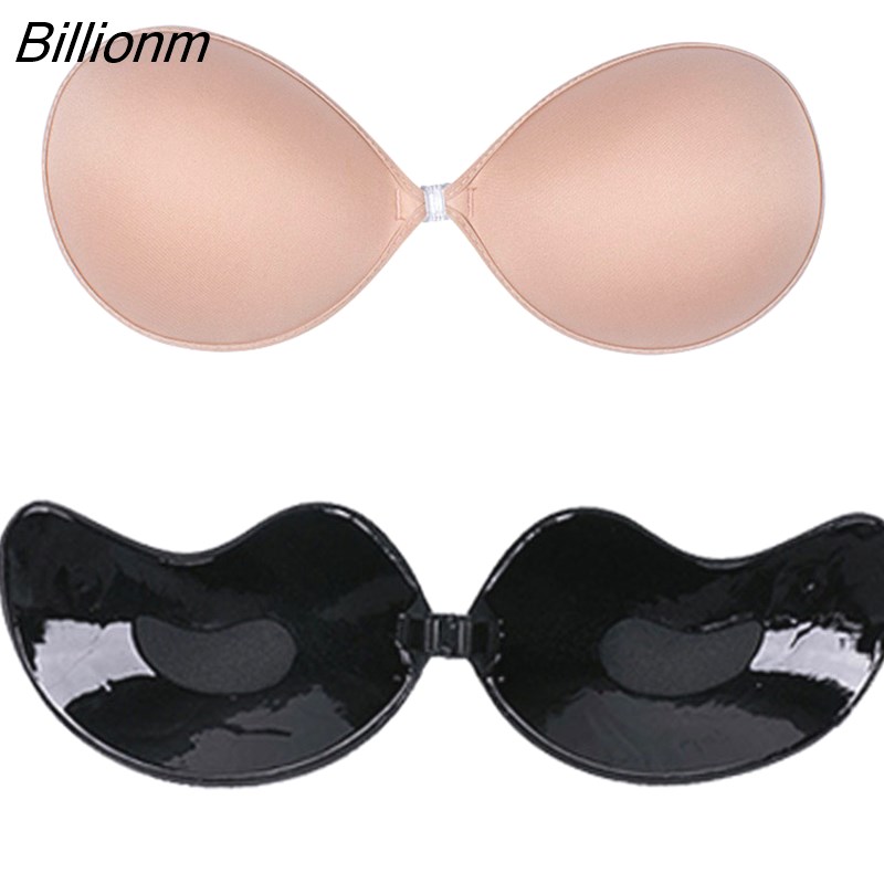 Billionm Sexy Women Invisible Push Up Bra Self-Adhesive Silicone Bust Front Closure Sticky Bra Black Skin Backless Strapless Bra