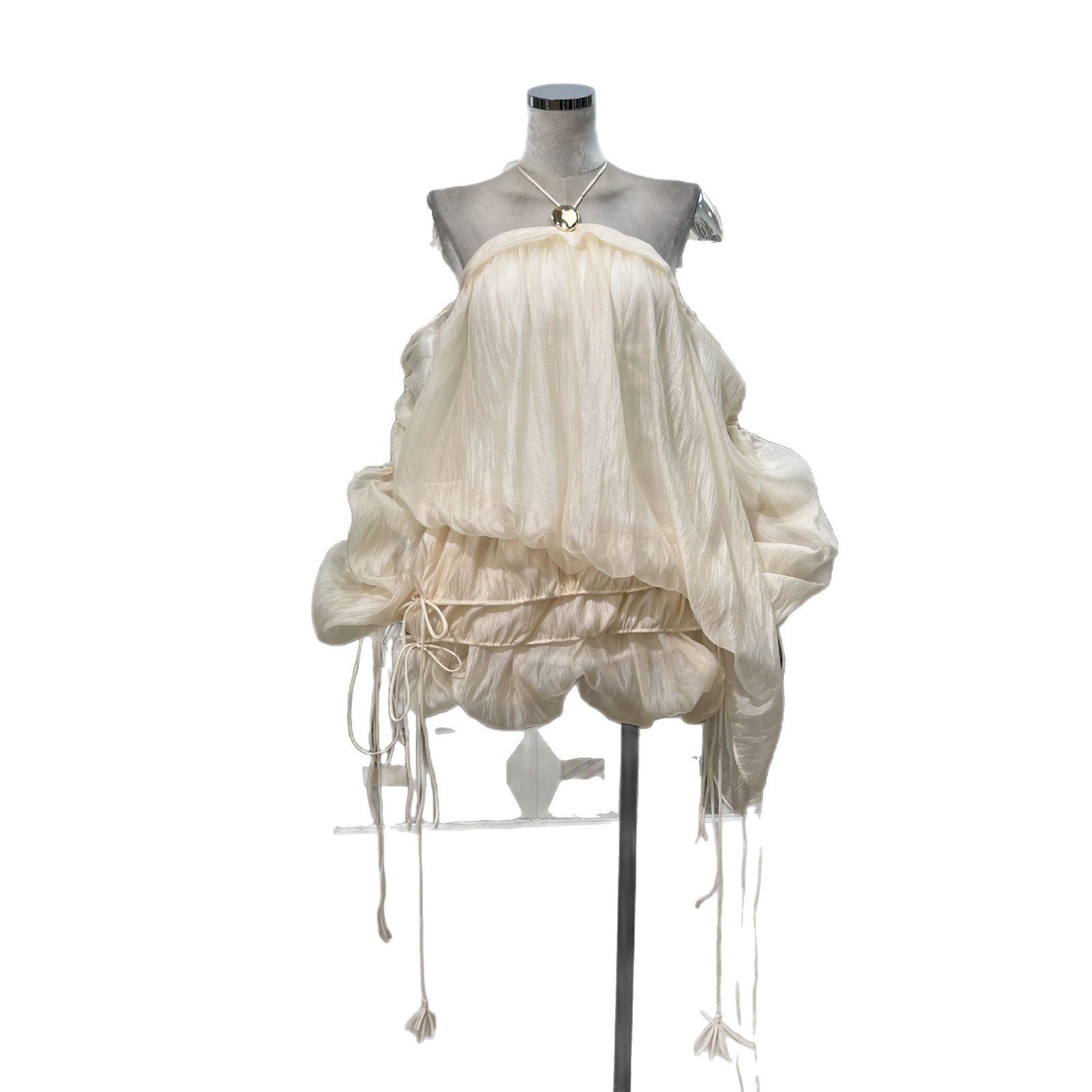 Billionm Summer Time Pure Romantic Lysula With Folded Puffs Folded Puffs Hanging Neck-Luff Dress Thin