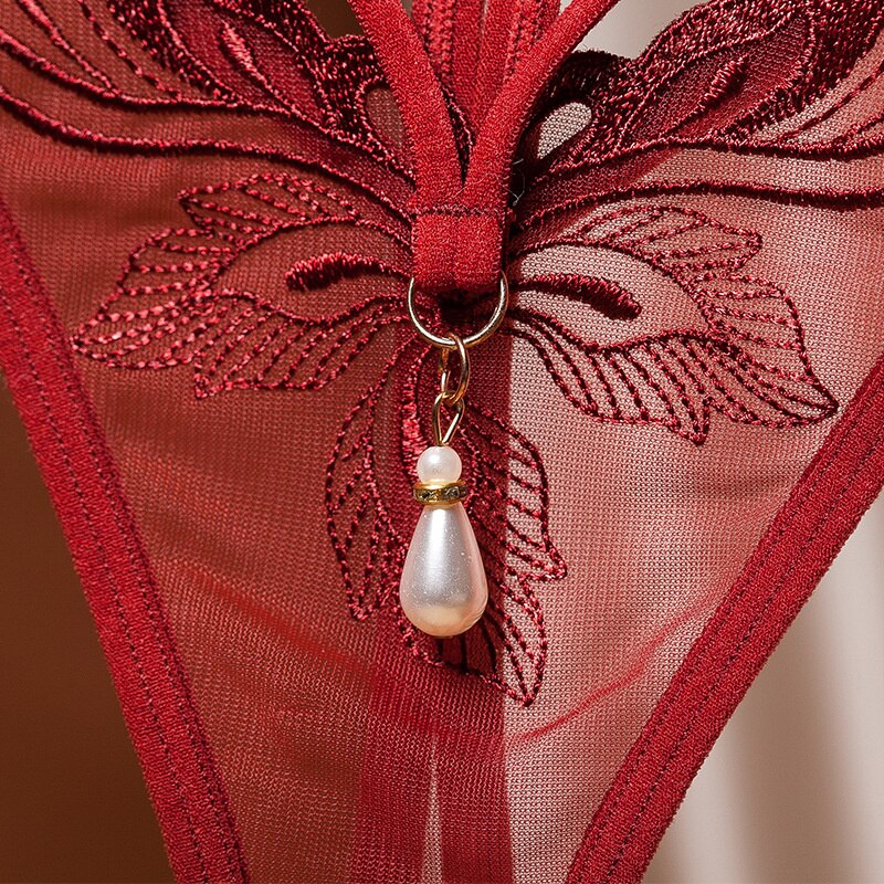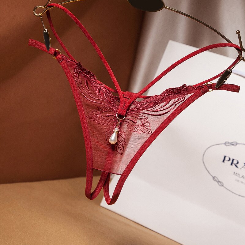 Billionm Erotic Underwear Open Crotch Panties Temptation Embroidery Thong Female Transparent Seamless Underpants Sexy Pearl Panties