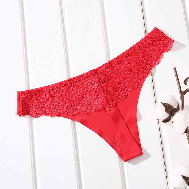1 Pcs Female Ice Silk Thongs Underwear For Woman Sexy Lace Seamless Mid Rise Cotton Crotch Woman G-string Free Shipping BANNRIOU