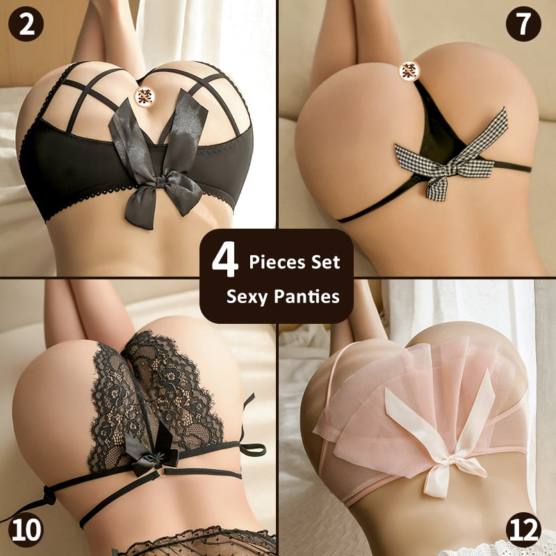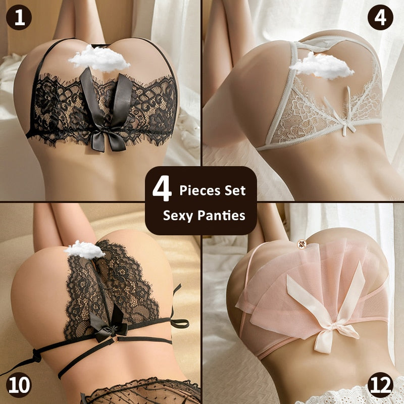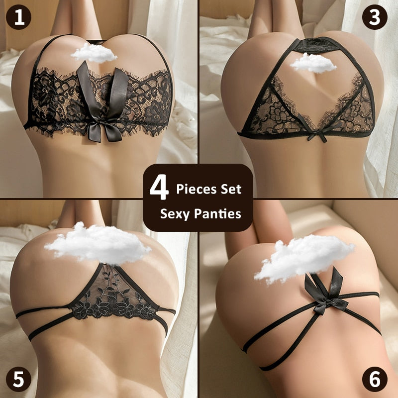 16 Types Of Porno Open Crotch Sexy Panties Lace See Through String Briefs 4 Pcs Set Cute Bow Knot Thong Sex Underwear For Women