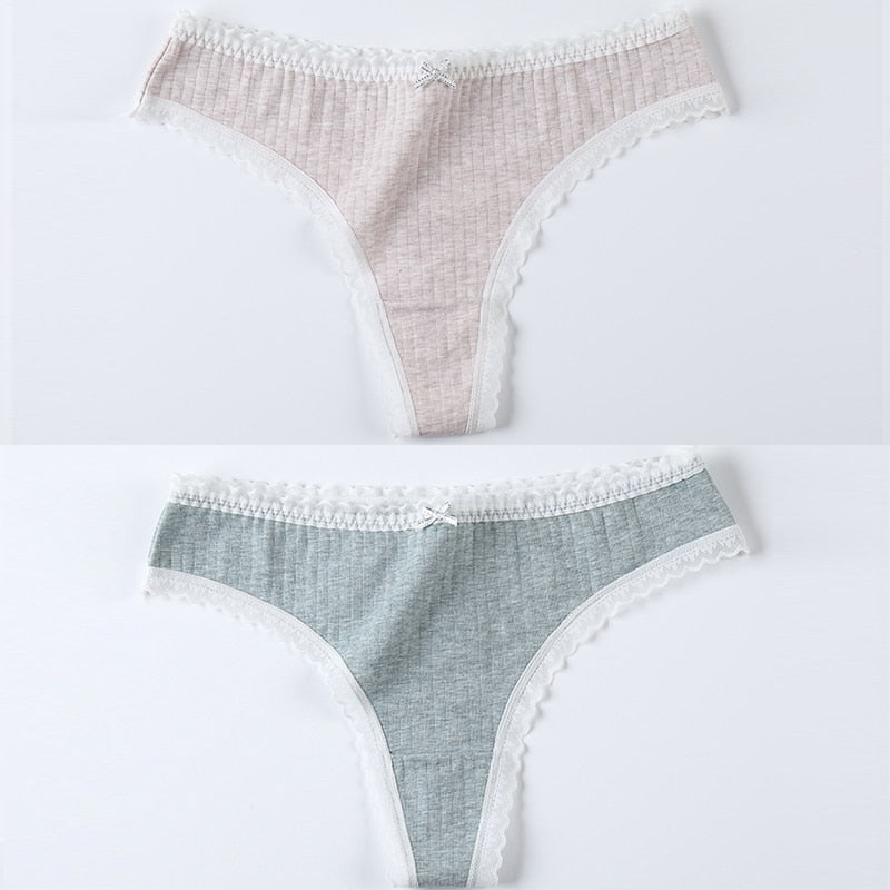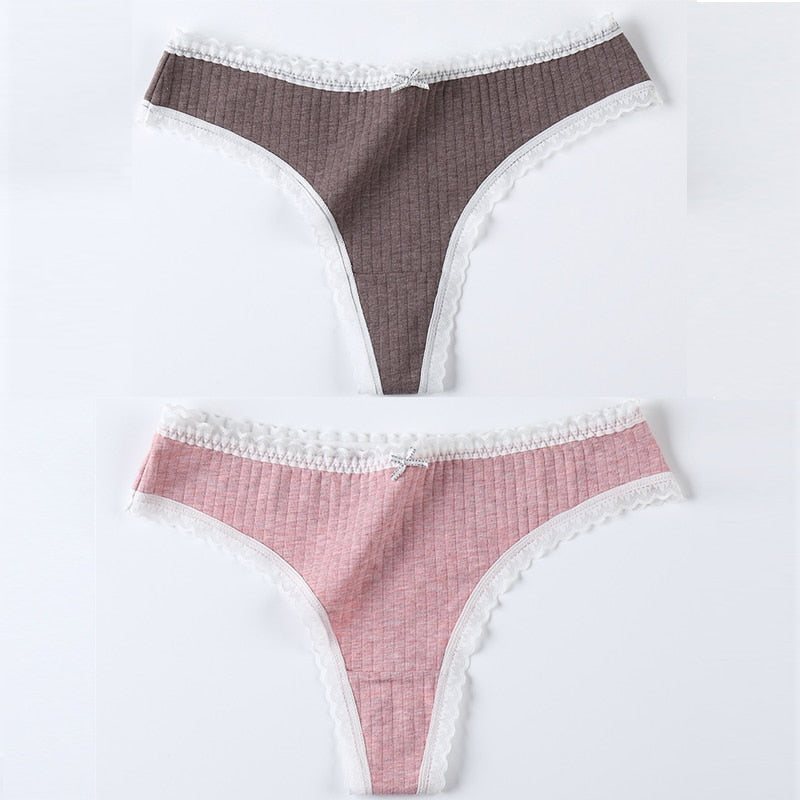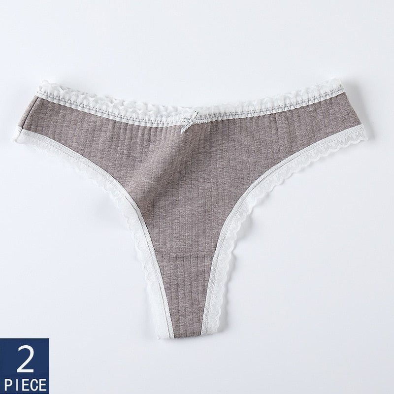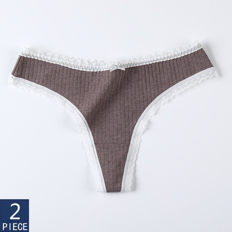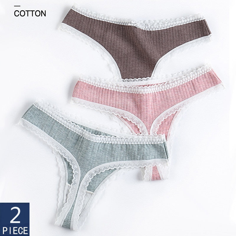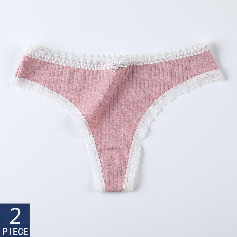 2 Pieces Women Panties Thongs Cotton Striped Underwear Comfortable Cute Low-Rise Ladies G-String Briefs Sexy Kawaii Lingerie