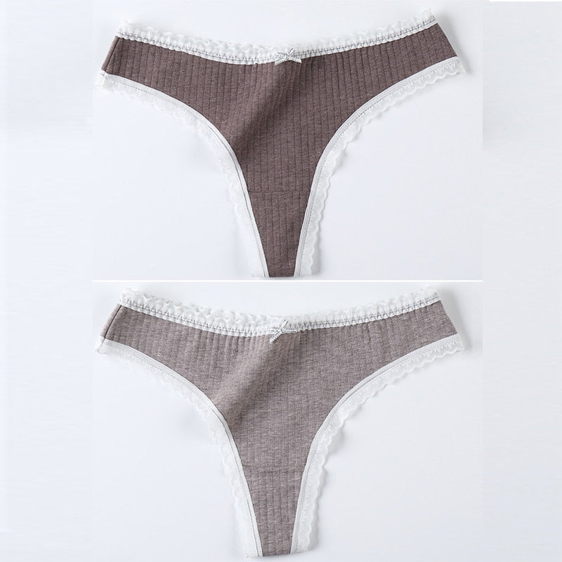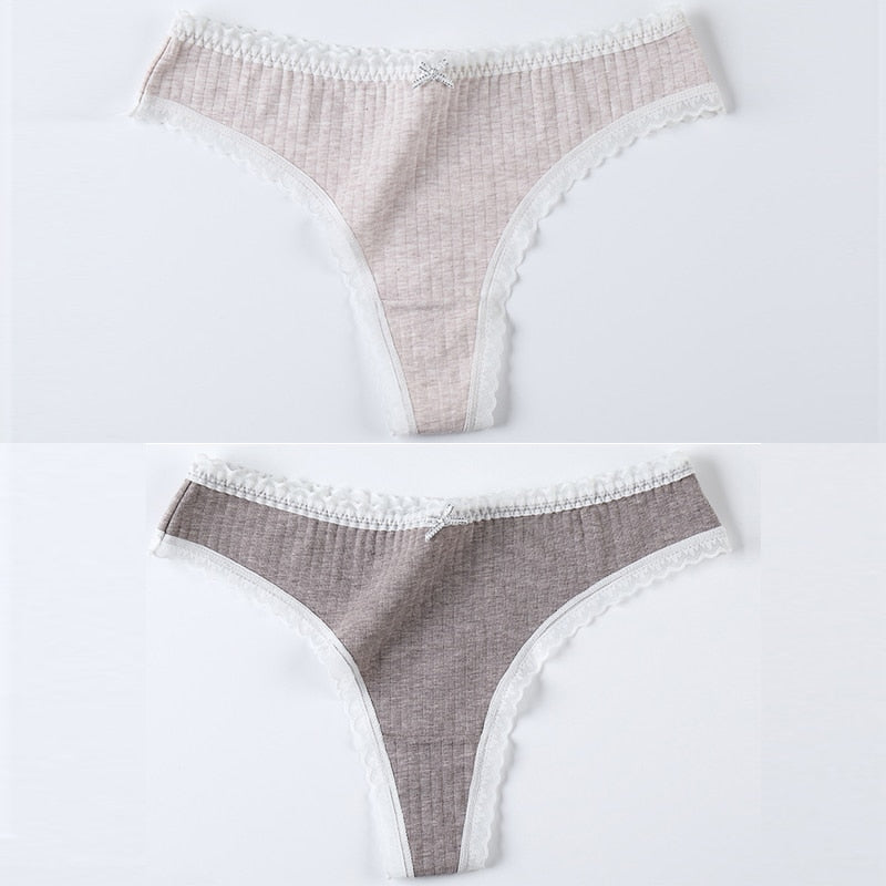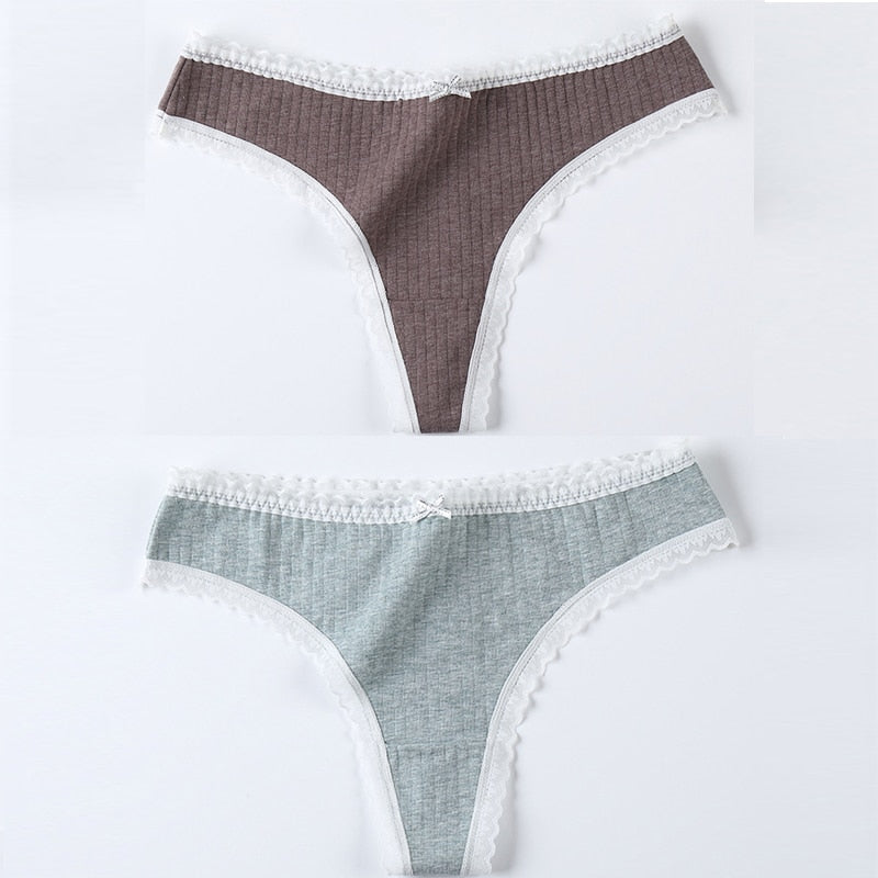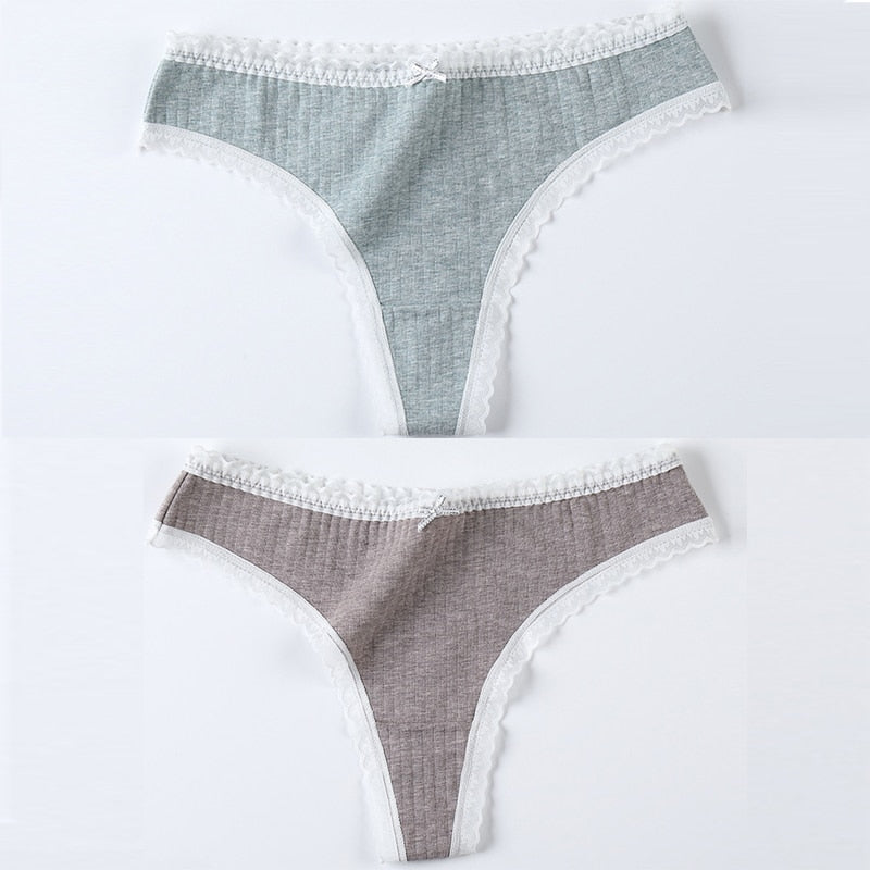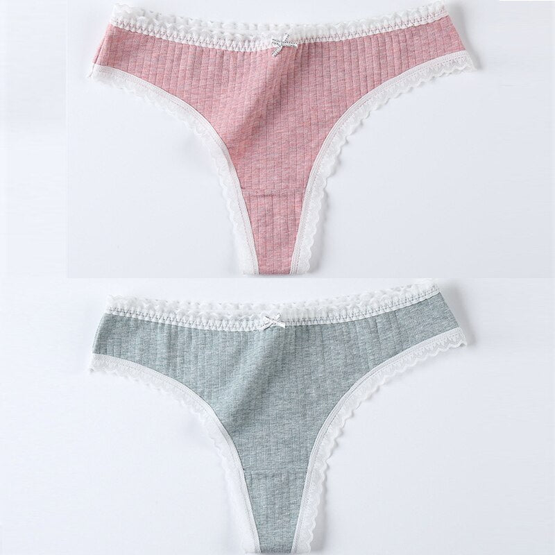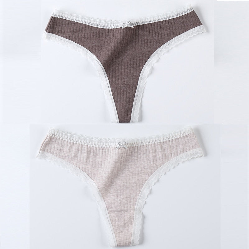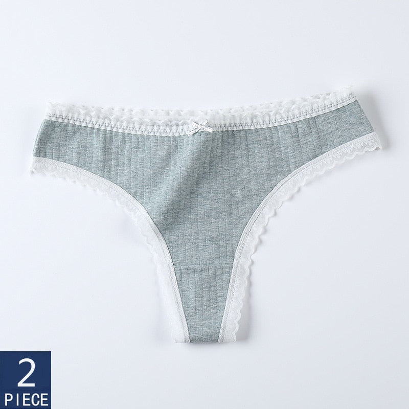 2 Pieces Women Panties Thongs Cotton Striped Underwear Comfortable Cute Low-Rise Ladies G-String Briefs Sexy Kawaii Lingerie