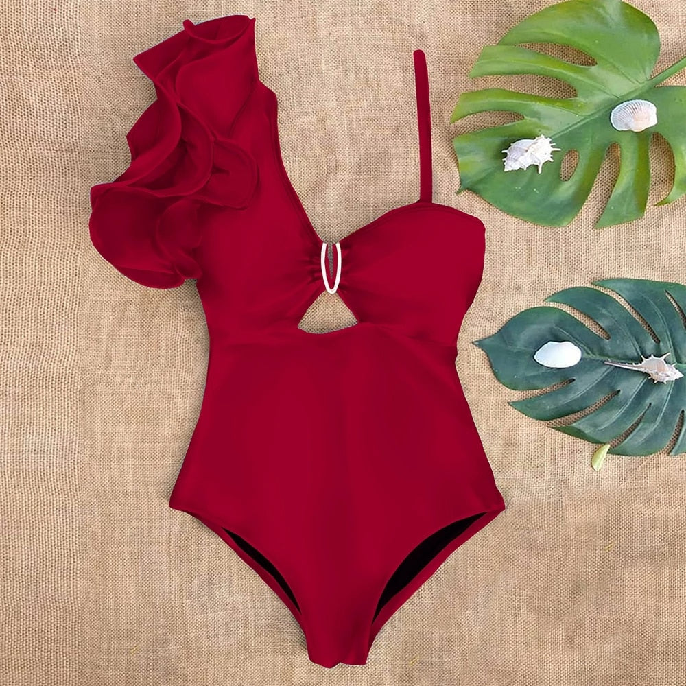 2020 New Sexy Ruffle Print Floral One Piece Strappy One shoulder Swimwear Women Swimsuit Bathing Suit Backless Beachwear Monkini