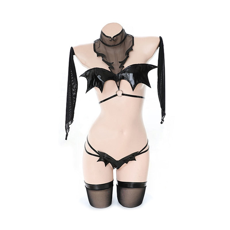 2020 Sexy Devil Cosplay Costumes  Bat Girl Bikini Desiagn Uniform Tempting Hot Girl Halloween Set Cute G-string Live Show Outfit