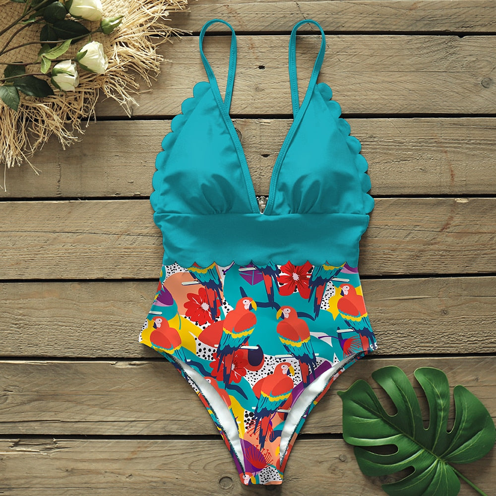 2020 Sexy One Piece Swimsuits Female Shoulder Floral Women Swimwear Push Up Bathing Suits Bodysuits Beach wear Ruffle Monokini