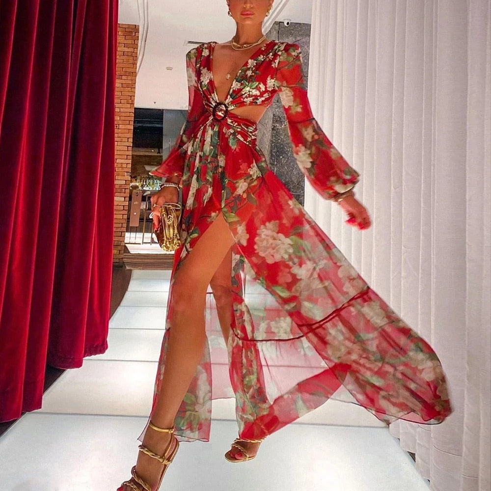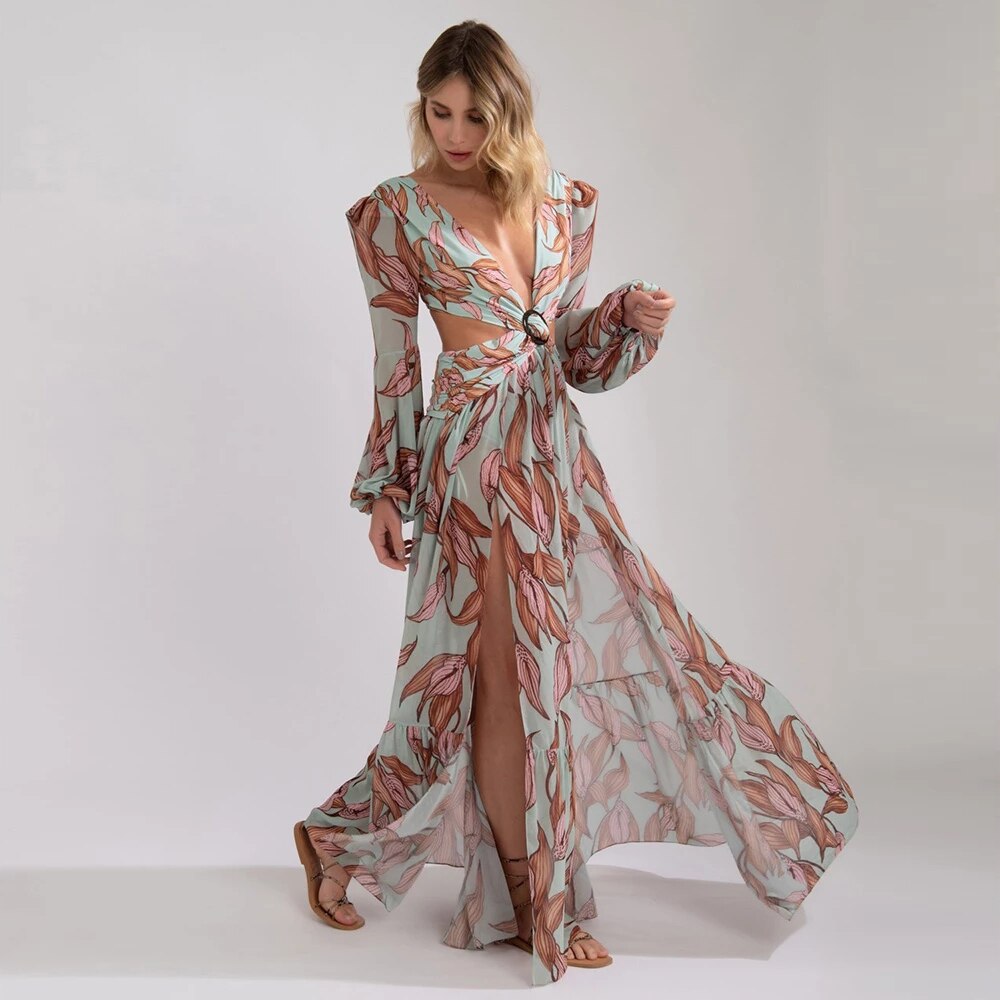 2021 Beach Dress Summer Floral Swimsuit Print Belt Bathing Suit Women Long Cover Up Off Shoulder Beachwear Bandeau Halt Swimsuit
