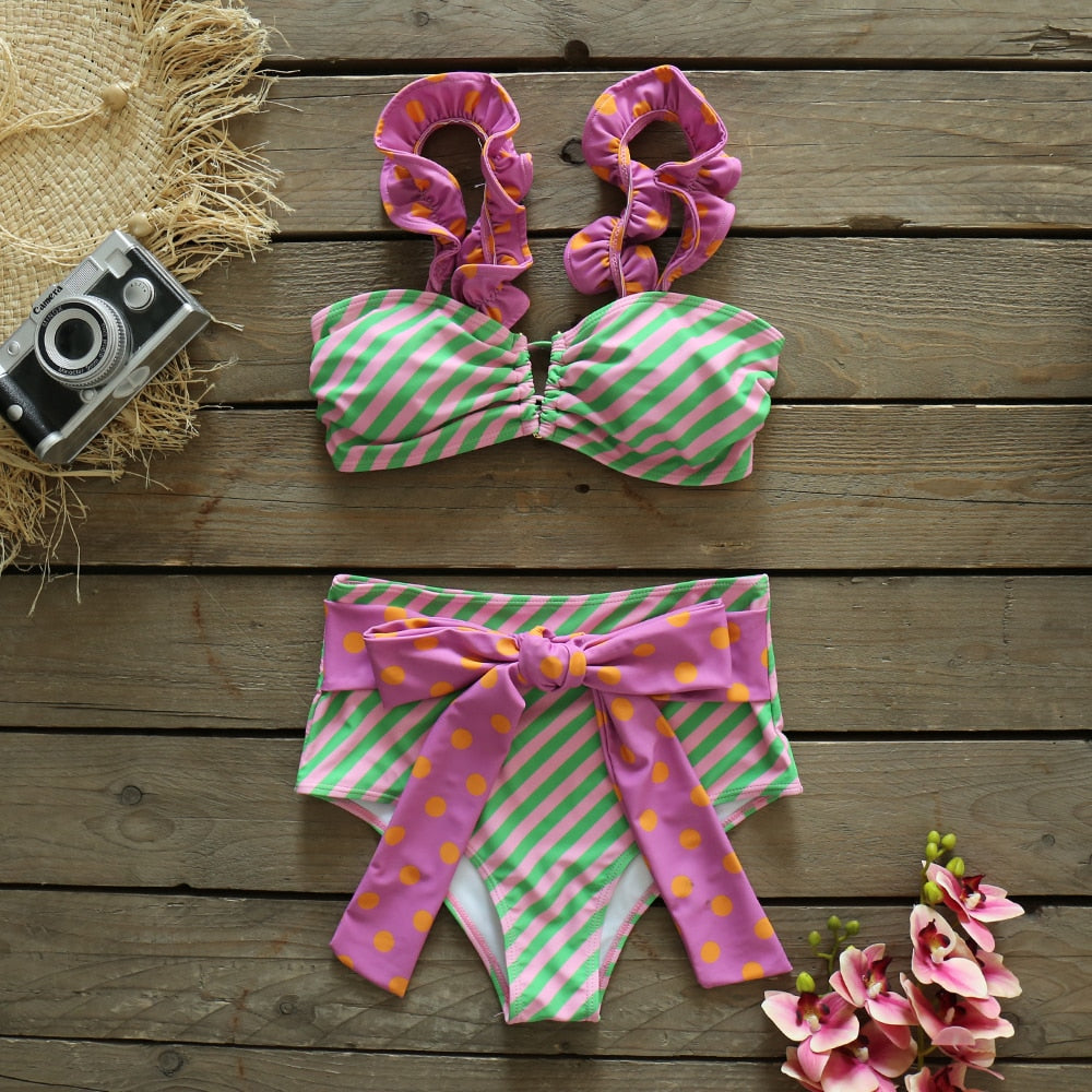 2021 New Push-Up Two Pieces Women Floral Padded Bra Ruffles Bandage Bikini Set Swimsuit Swimwear Bathing Suit Beach Wear biquini
