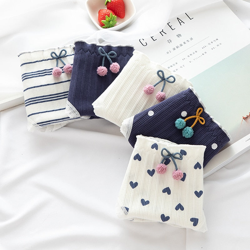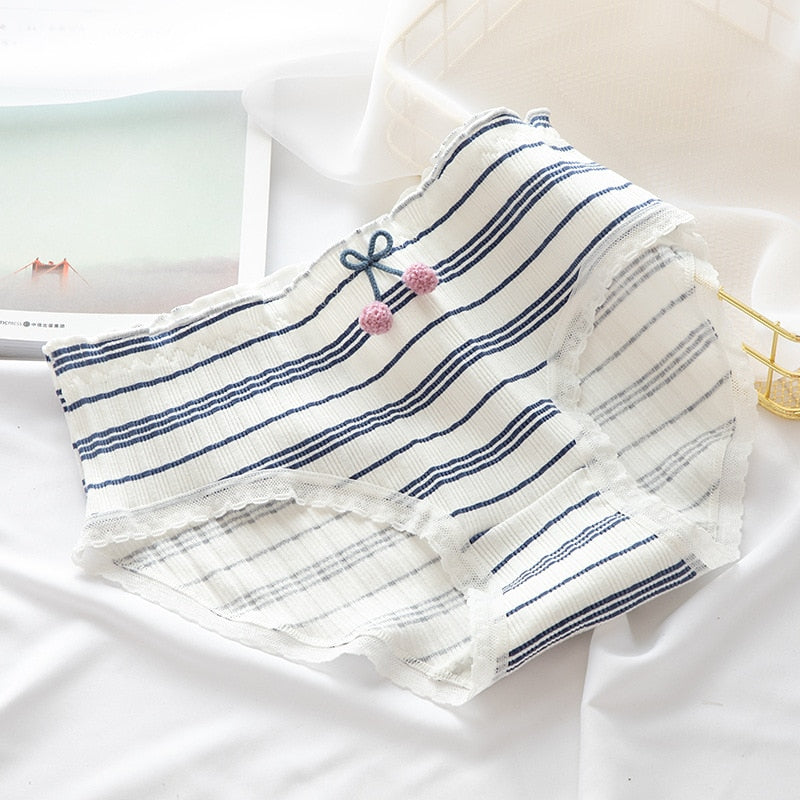 2021 Women's Cotton Underwear Cute Girl's Underpants Mid Waist Dot Printing Briefs  Lace  Fashion Bow Panties Female Lingerie