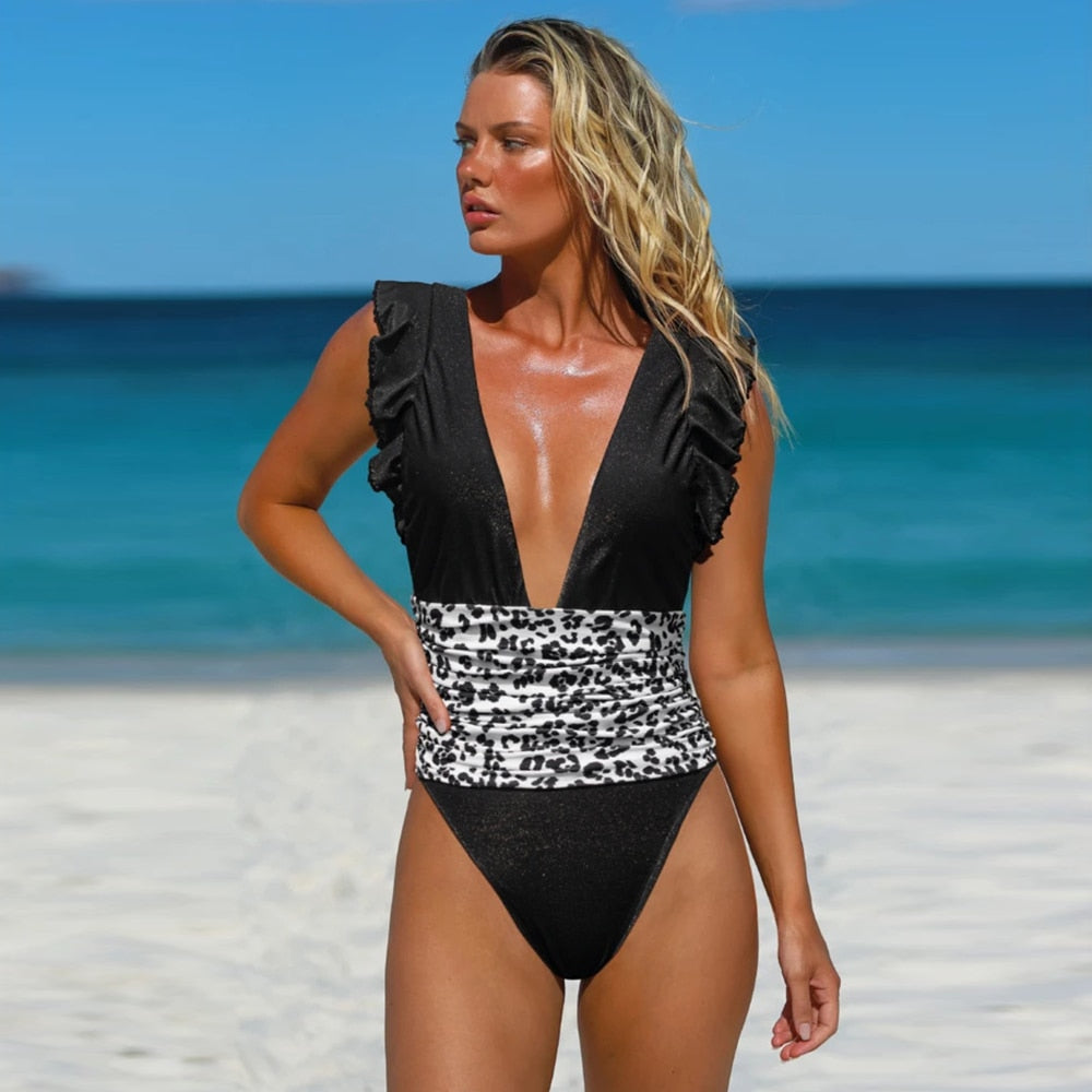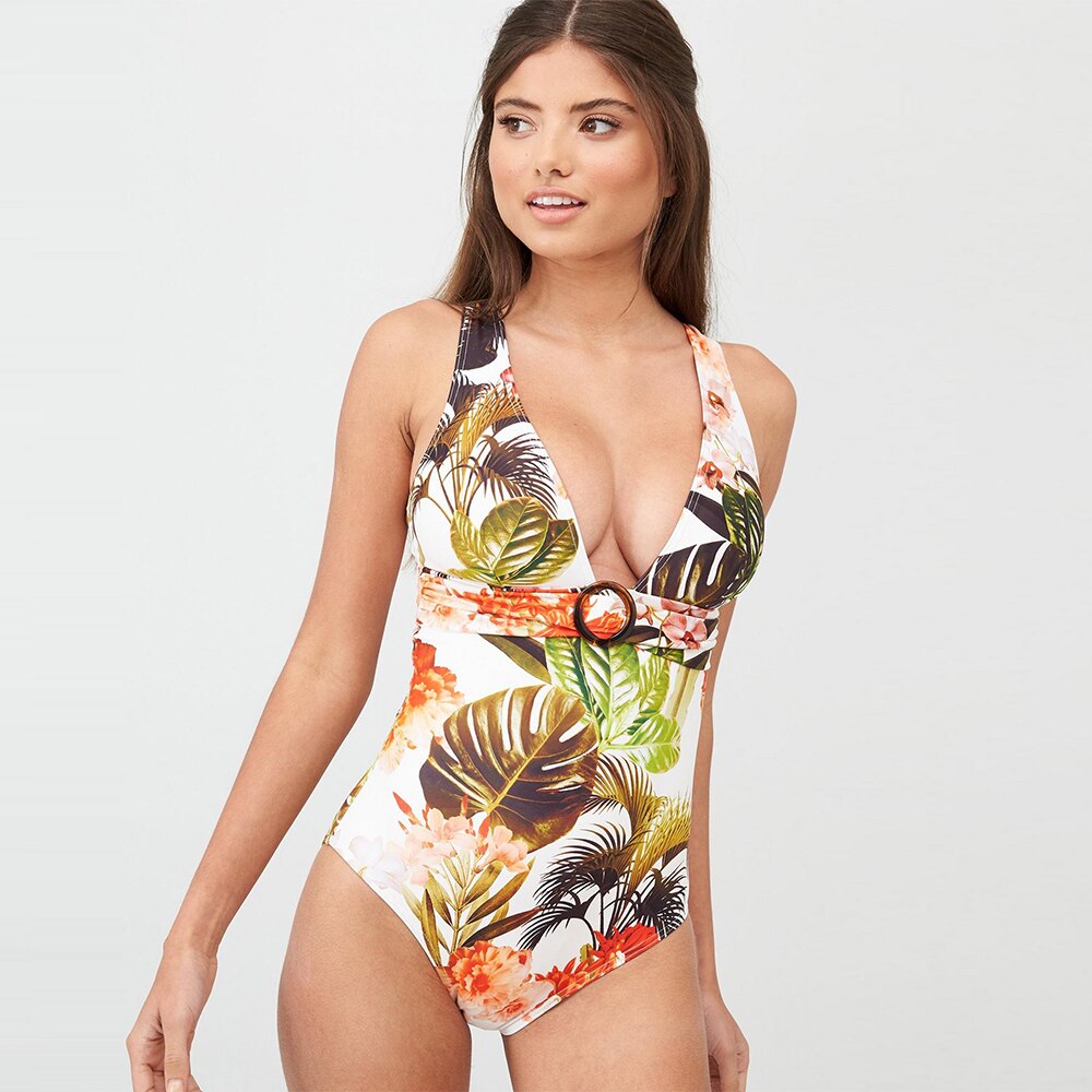 2022 New Push Up Print Floral Swimwear Women V-Neck Ruffle One Piece Flounce Swimsuit Beach Wear Bathing Suits Backless Monokini