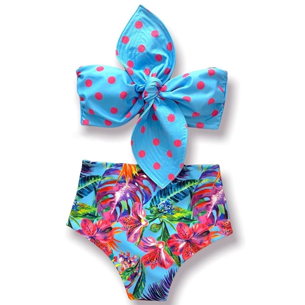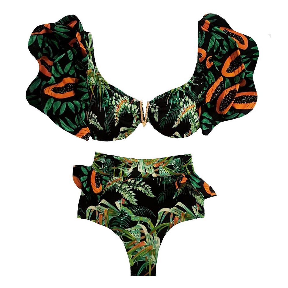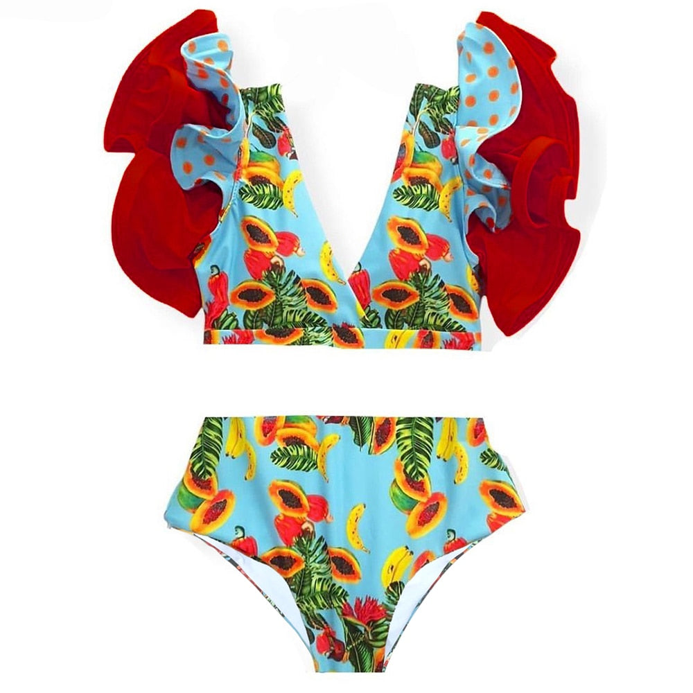 2022 New Sexy High Waist Bikini Sets Ruffle Swimwear Women Swimsuit Print Floral Dots V-neck Beach Wear Bathing Suits biquini