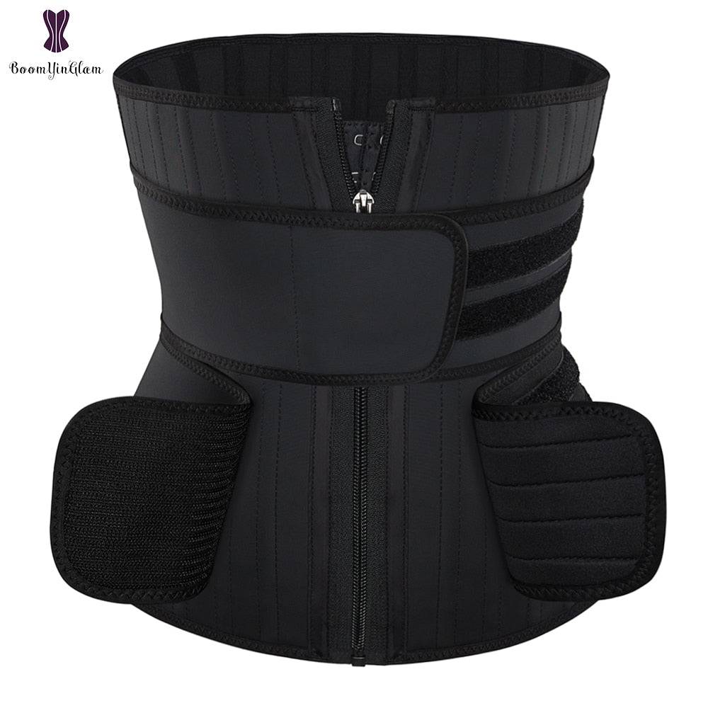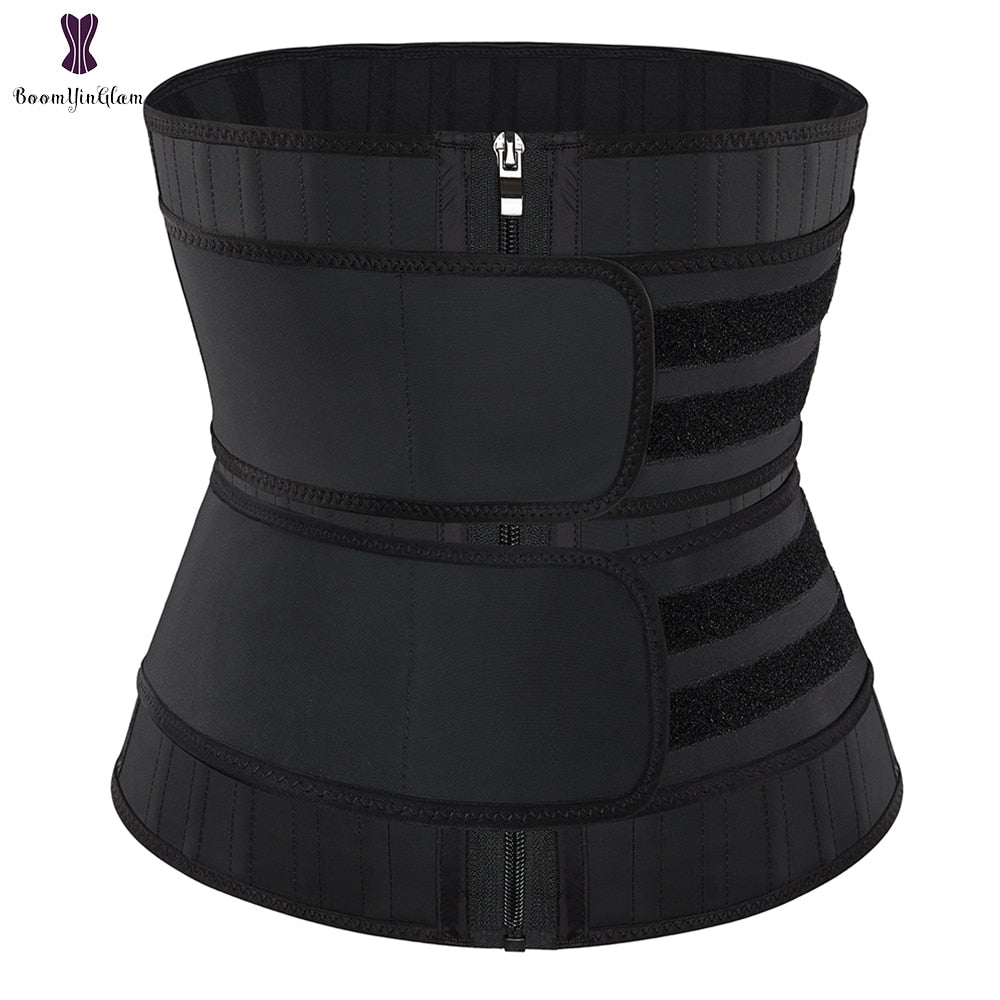 25 Steel Bones Latex Waist Trainer Double Belts Zipper And Hooks Fajas Corset Training Cincher