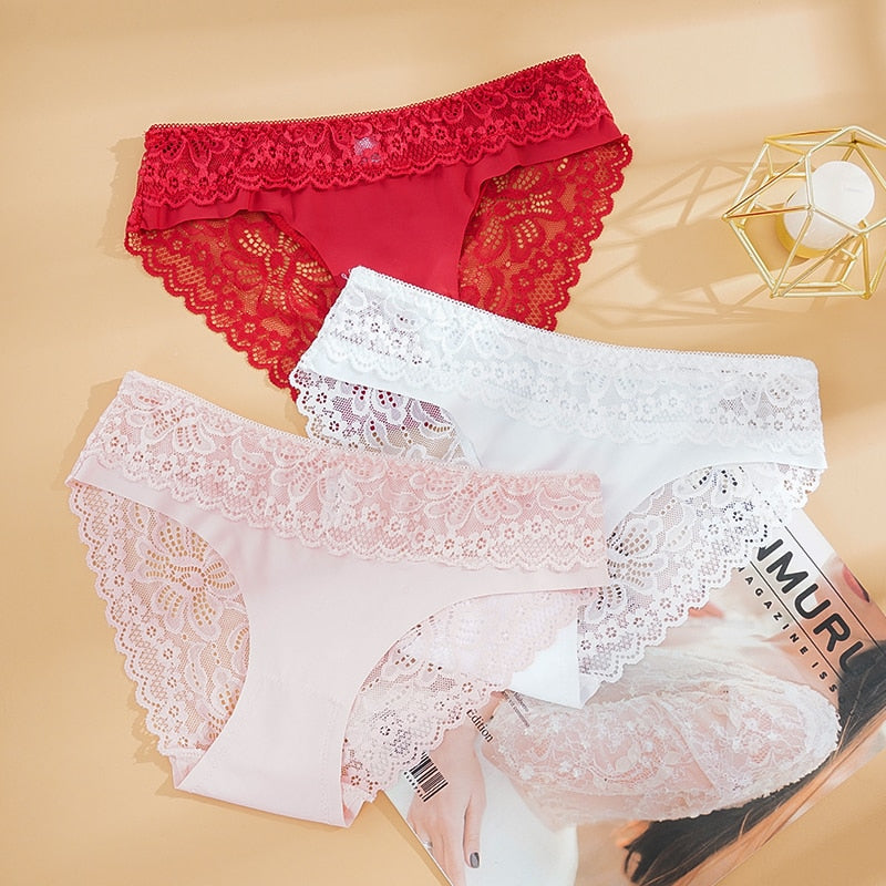 2PCS/Set Lace Panties Seamless Women's Underwear Soft Lingerie Intimate Sexy Female Underpants Comfortable Floral Pantys