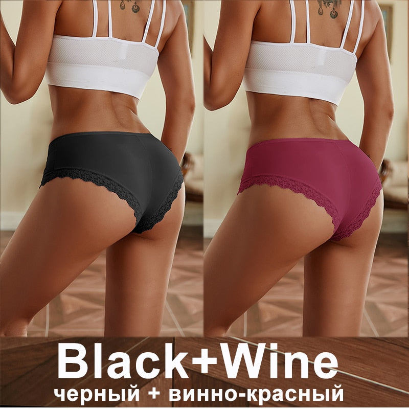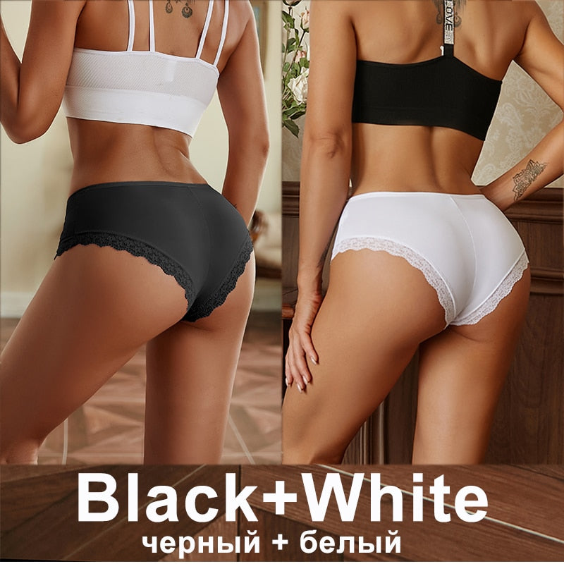 2PCS/Set Women Underwear Lace Panties Underwear Sexy Seamless Female Lingerie Intimate Underpants Cheekie Panties Floral Finetoo