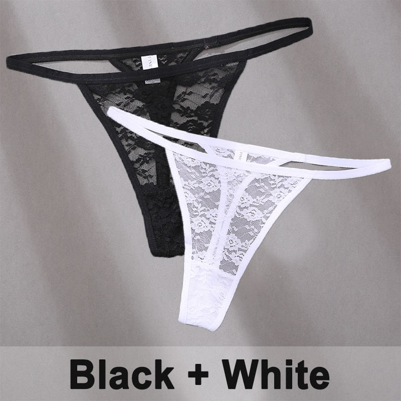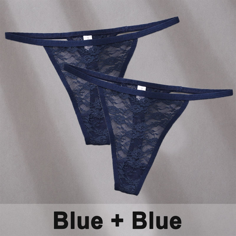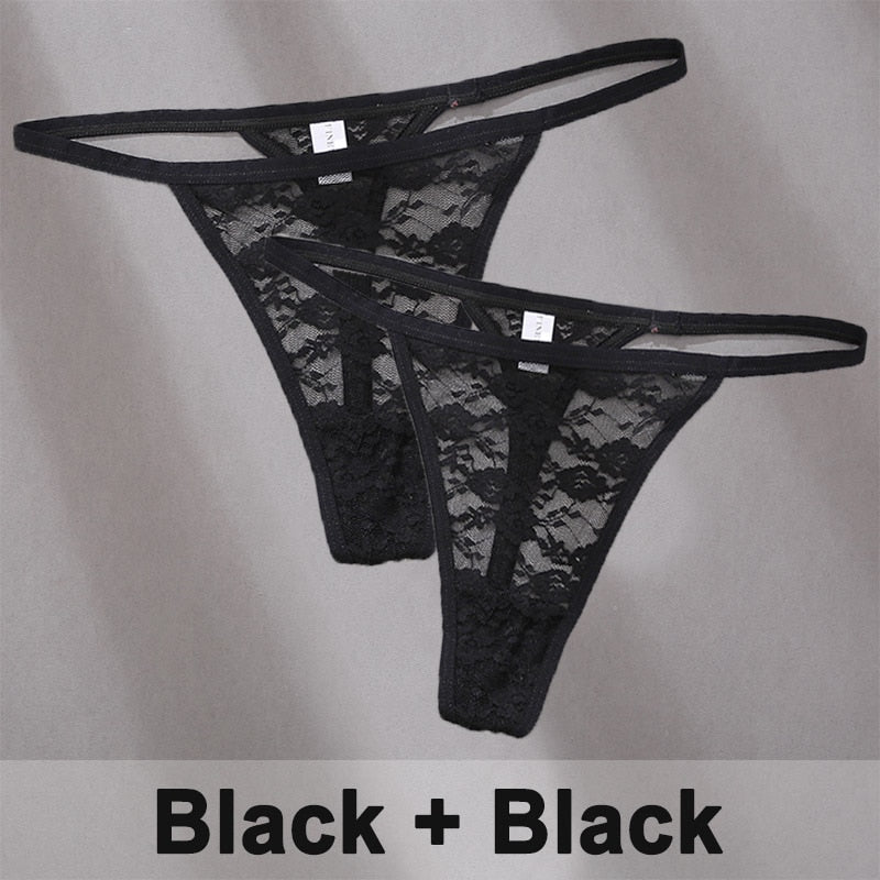 2PCS/Set Women's Underwear Lace Panties Floral Lingerie Woman Panties Sexy Thong G-String Female Pantys Perspective Intimates