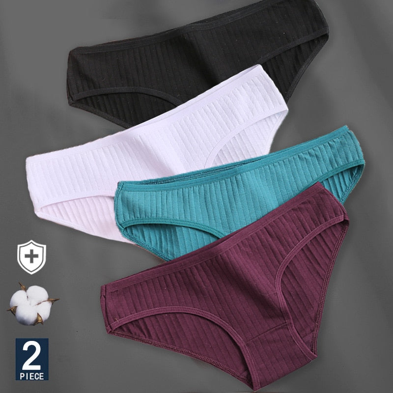 2PCS Women's Cotton Panties Sexy Underwear 6 Solid Color Panties for Woman Female Underpants Intimate Lingerie Briefs Pantys Set