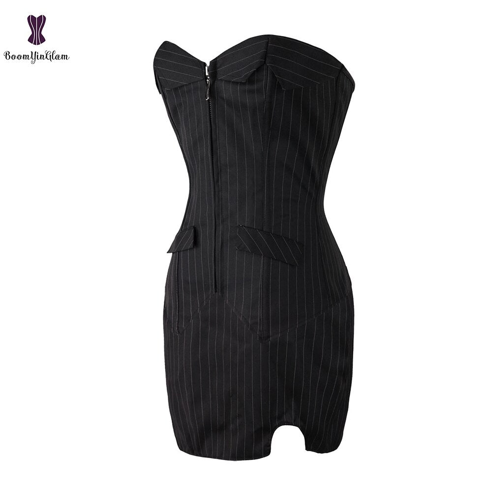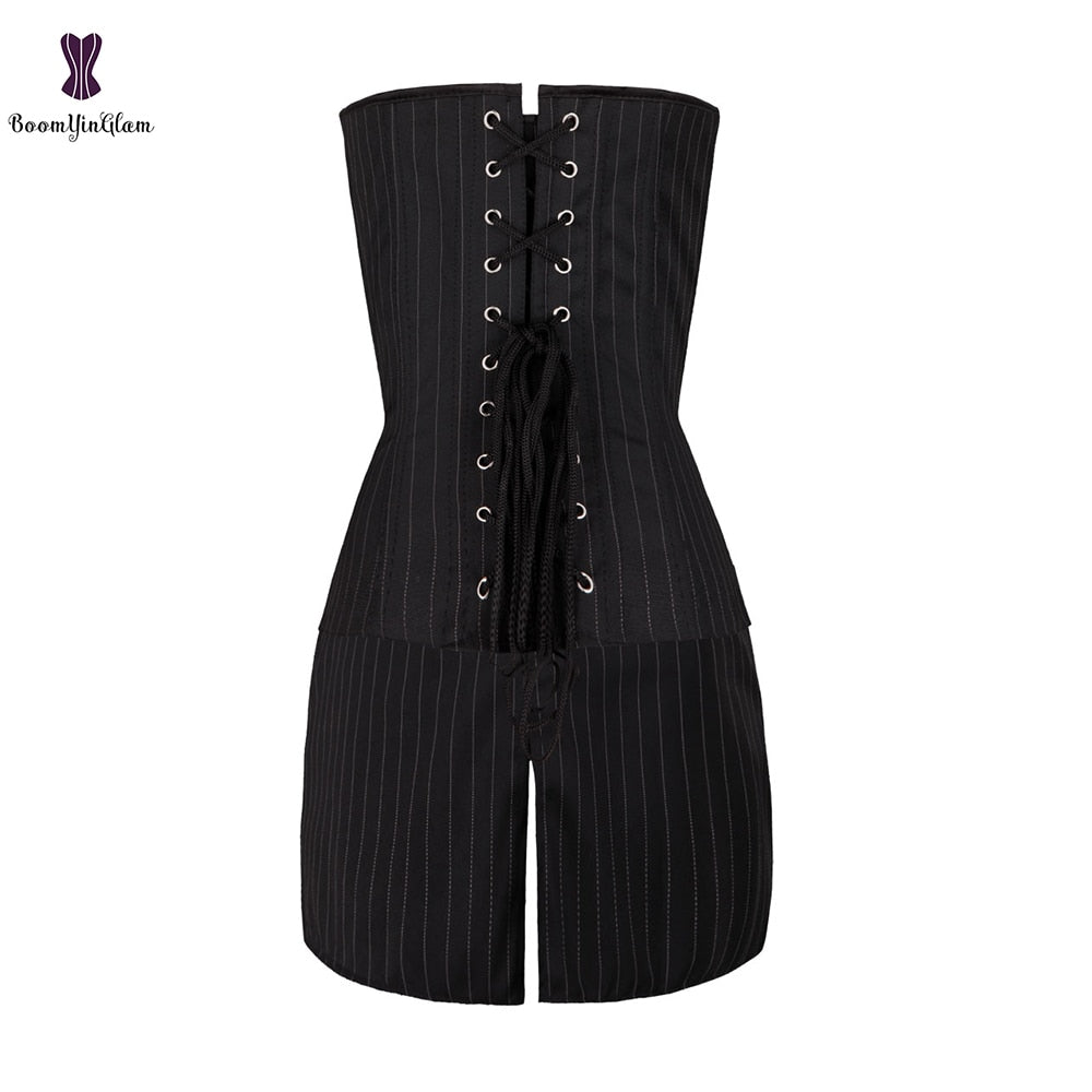 3 Pcs Set Front Zipper Sexy Pinstripe Corset Basque Top With Mini Skirt Secretary Fancy Dress Costume For Party 801#