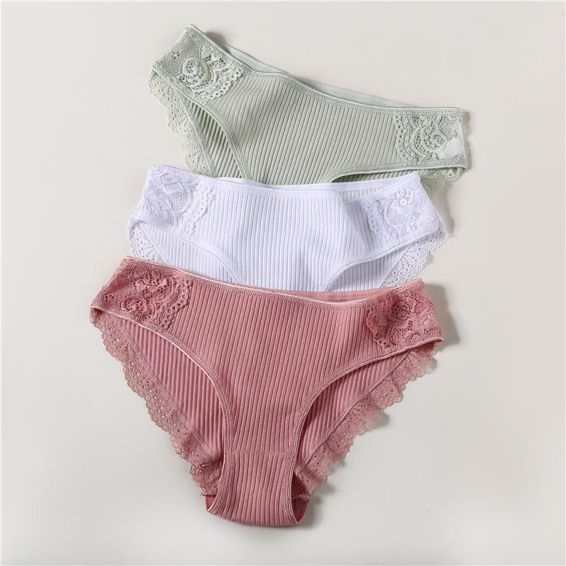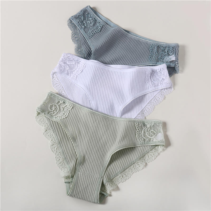 3PCS/Set 6 Color Women Panties Cotton Lace Briefs Solid Color for Female Striped Sexy Cotton Underwear Lingerie Low Waist Flower