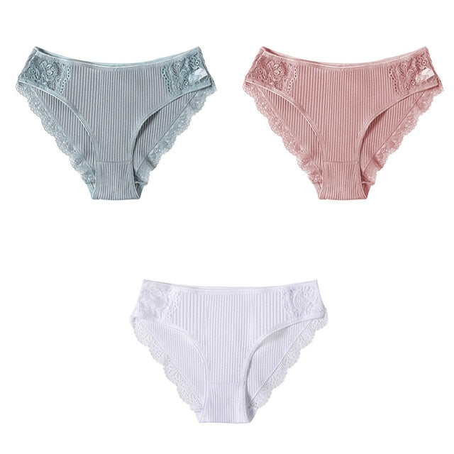 3PCS/Set Cotton Underwear Women's Panties Comfort Underpants Floral Lace Briefs For Woman Sexy Low-Rise Pantys Intimates M L XL