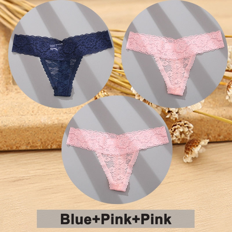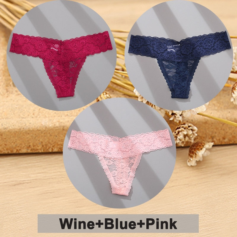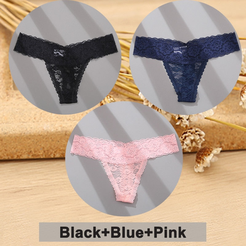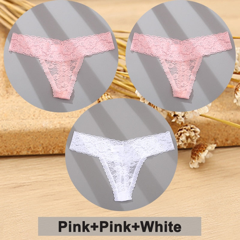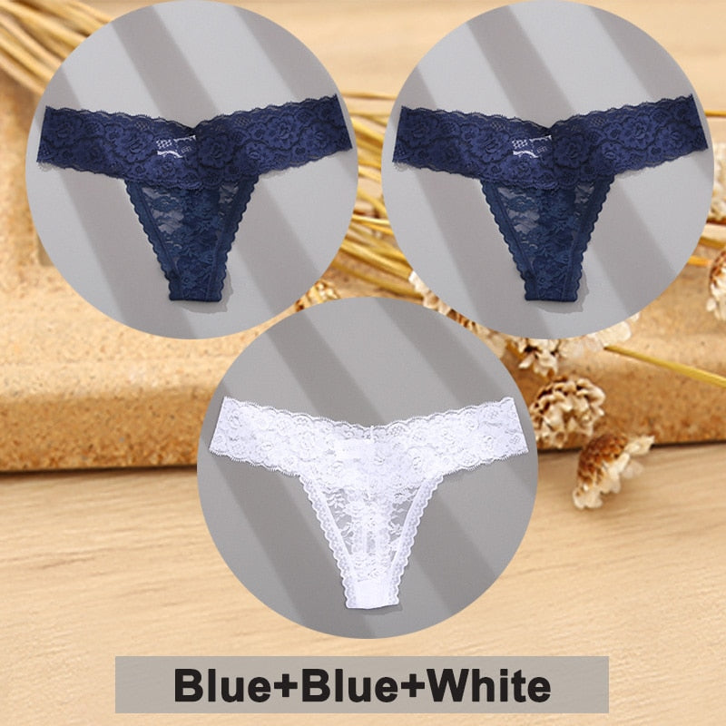3PCS/Set Lace Panties Full Floral Underwear Women Panties Underpants Sexy Briefs Thong Lace G-String Female Lingerie Intimates