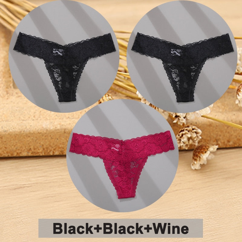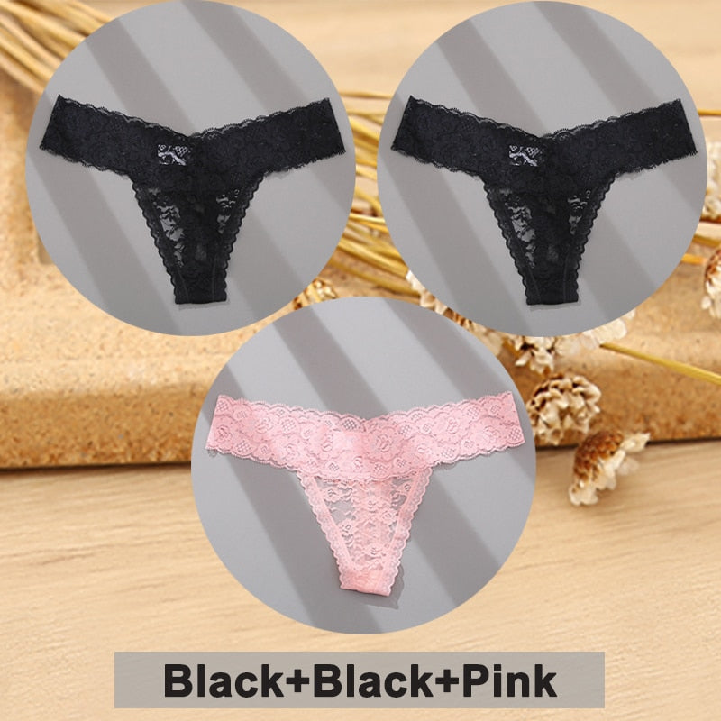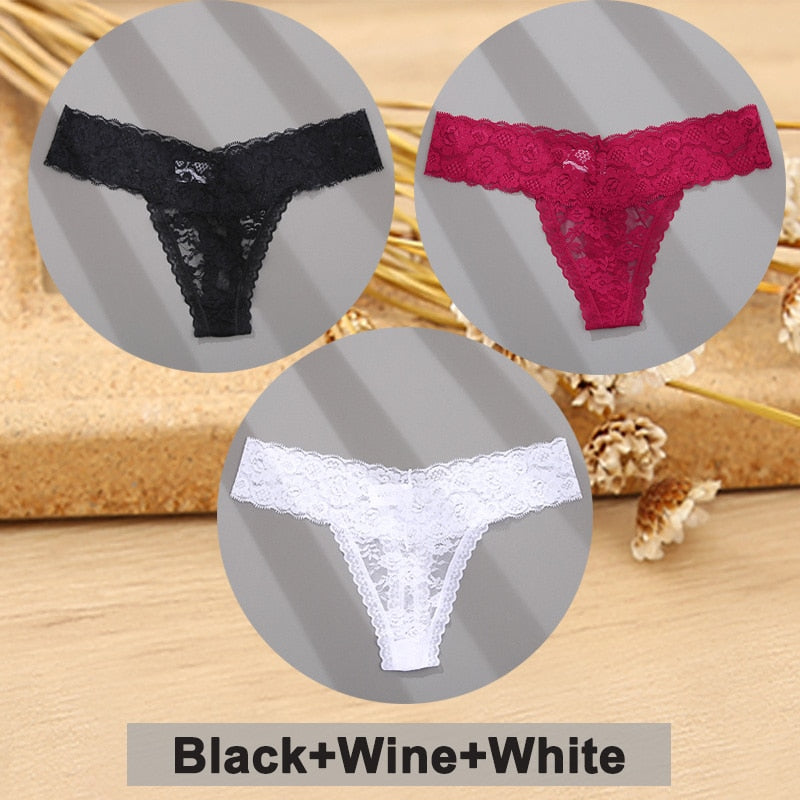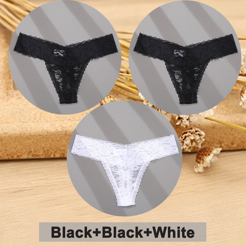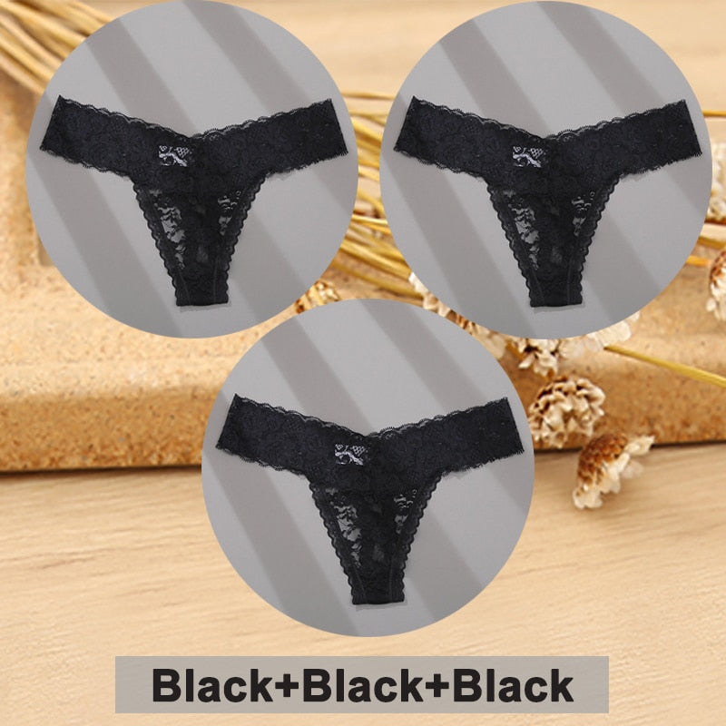 3PCS/Set Lace Panties Full Floral Underwear Women Panties Underpants Sexy Briefs Thong Lace G-String Female Lingerie Intimates