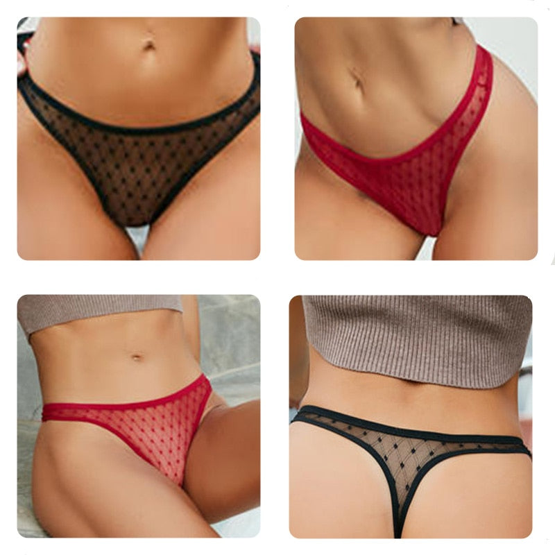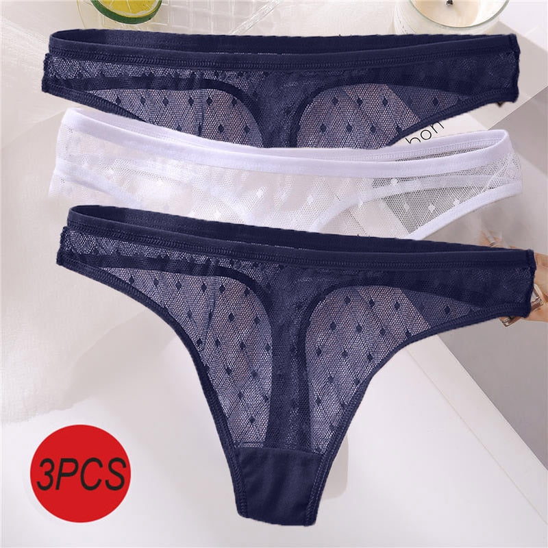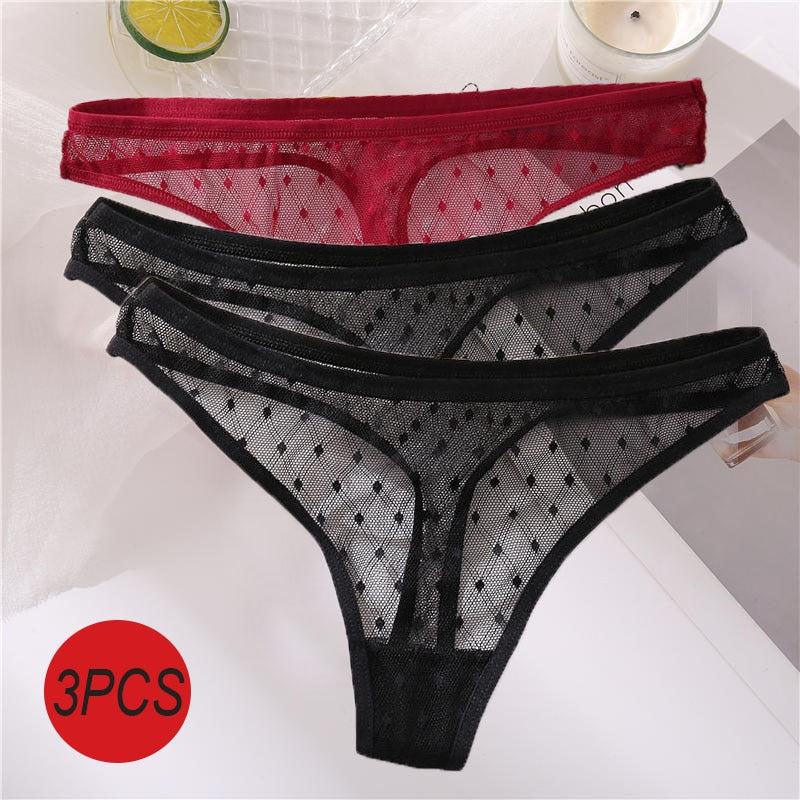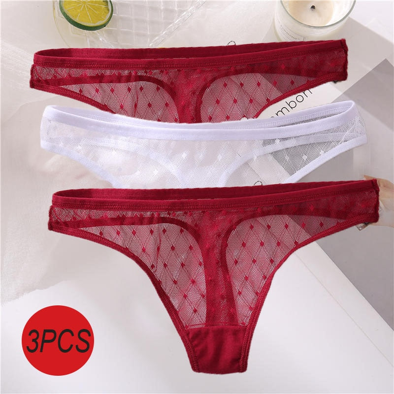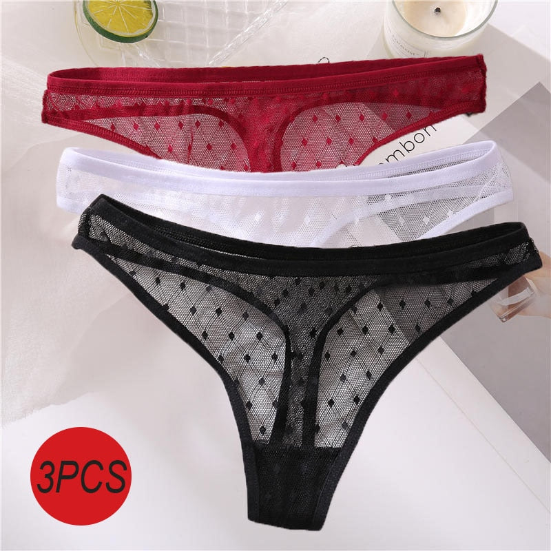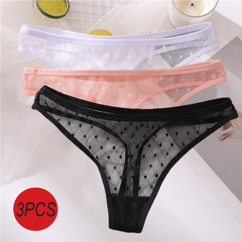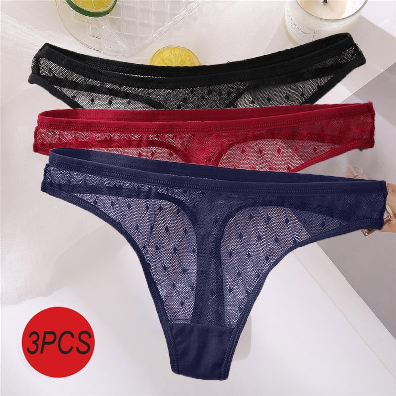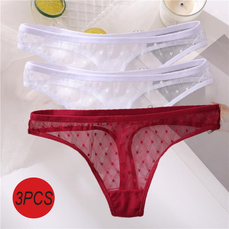 3PCS/Set Sexy Panties Women G-String Thong Lace Underwear Pantys Low-Waist Female Underpants Mesh Perspective Briefs Lingerie