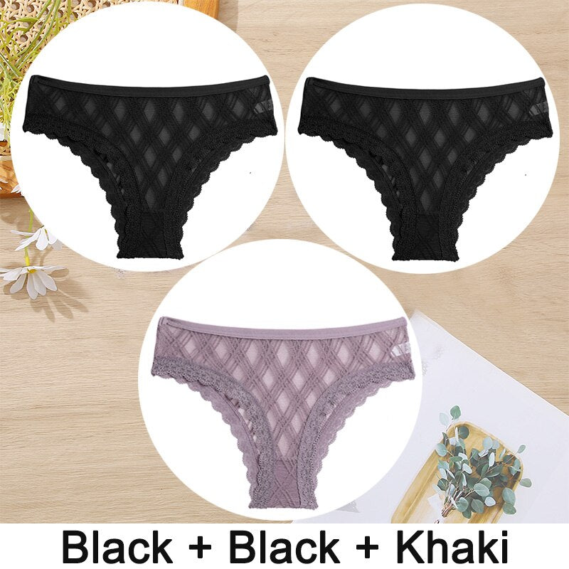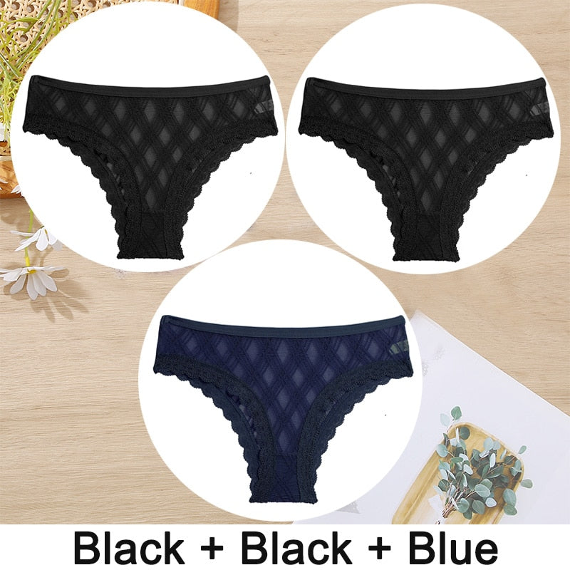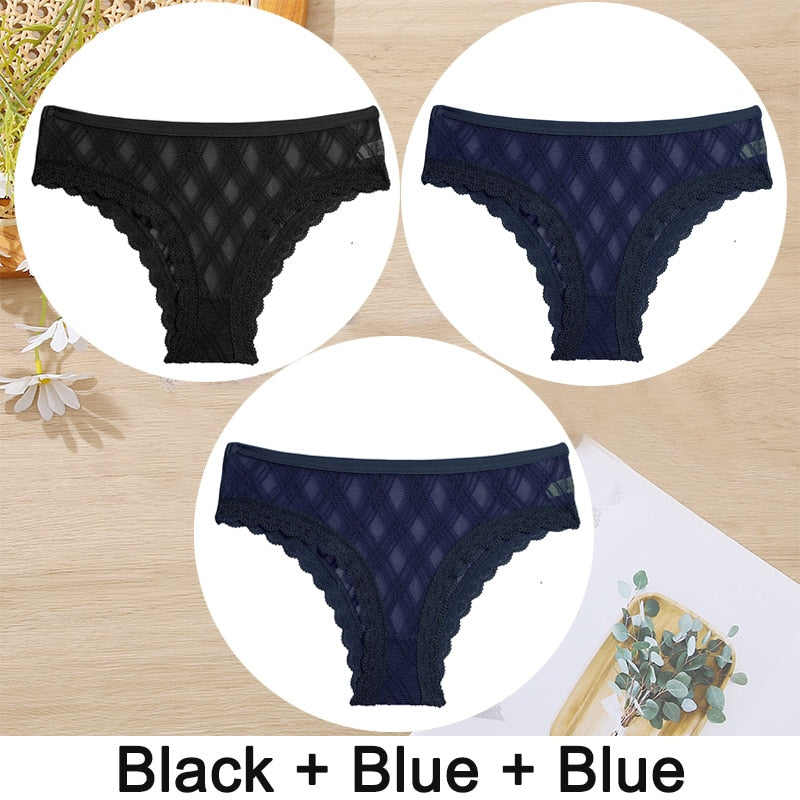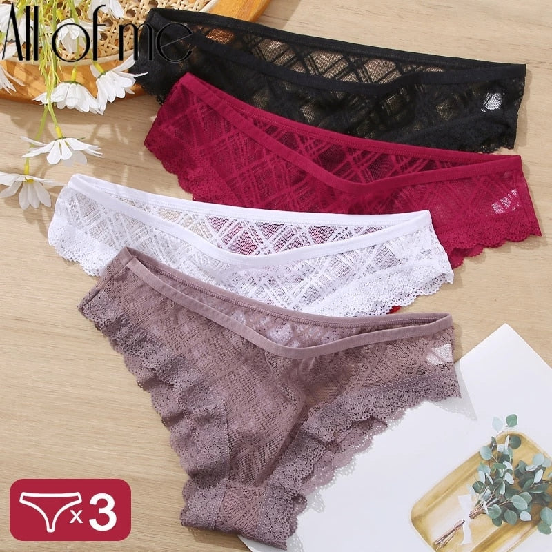 3PCS/Set Women Panties Sexy Underwear Lace Panties Lingerie Female Floral Lace Briefs Perspective Finetoo Design Ladies Pantys