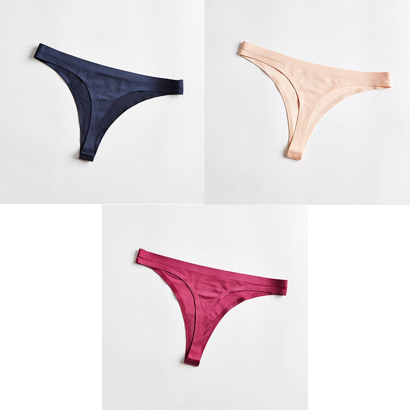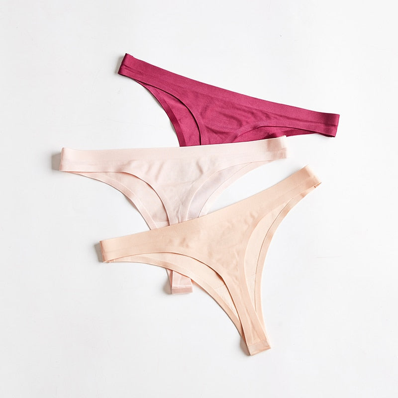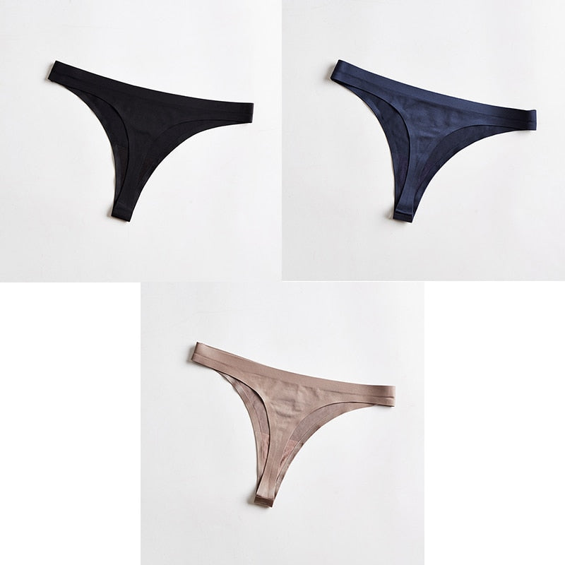 3pcs Woman Thongs Seamless Underwear For Women Sexy Sports Panty Female T-back G-string Underwear Ice Silk Ladies Underpants