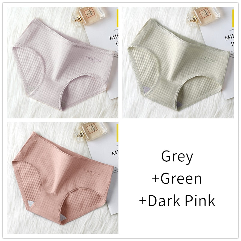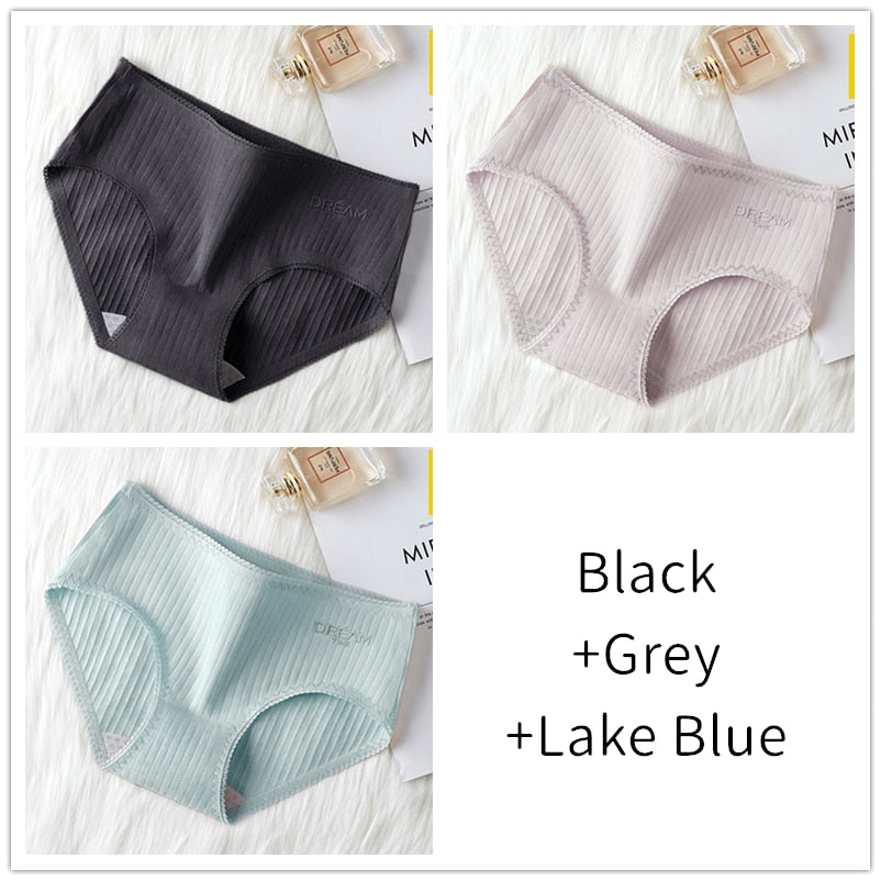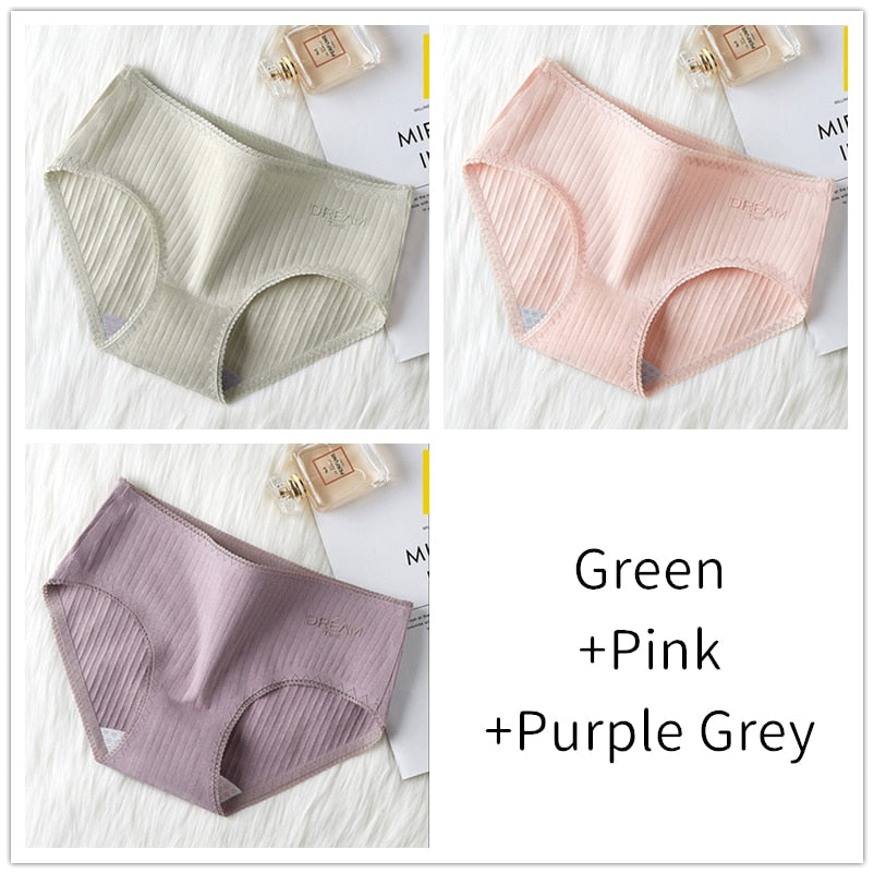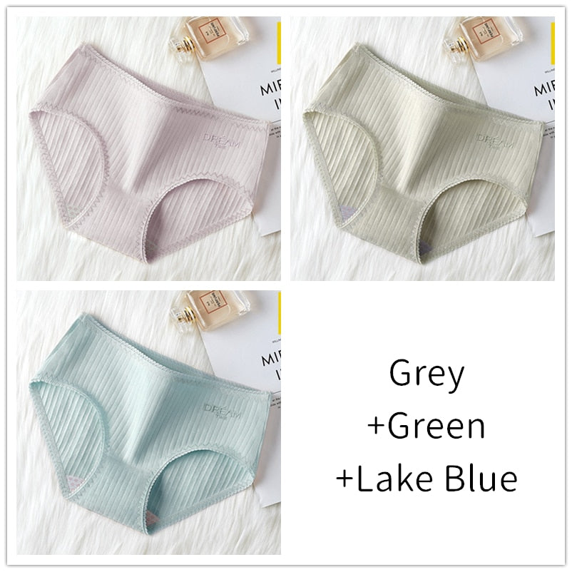 3Pcs Women Panties Lace Cotton Underwear Girls Mid Waist Briefs Lady Cute Sexy Lingerie Intimates Breathable Underpants Female