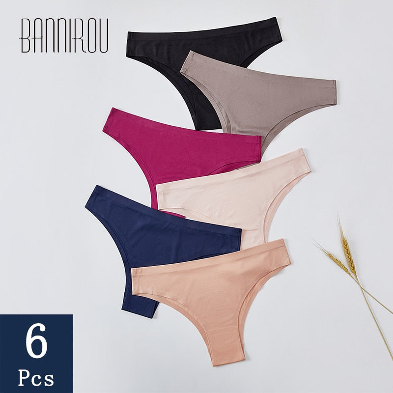 6pcs Woman Underwear Seamless Ice Silk Panties For Women Sexy Sports Female T-back Soft G-string Thongs For Ladies Underpants