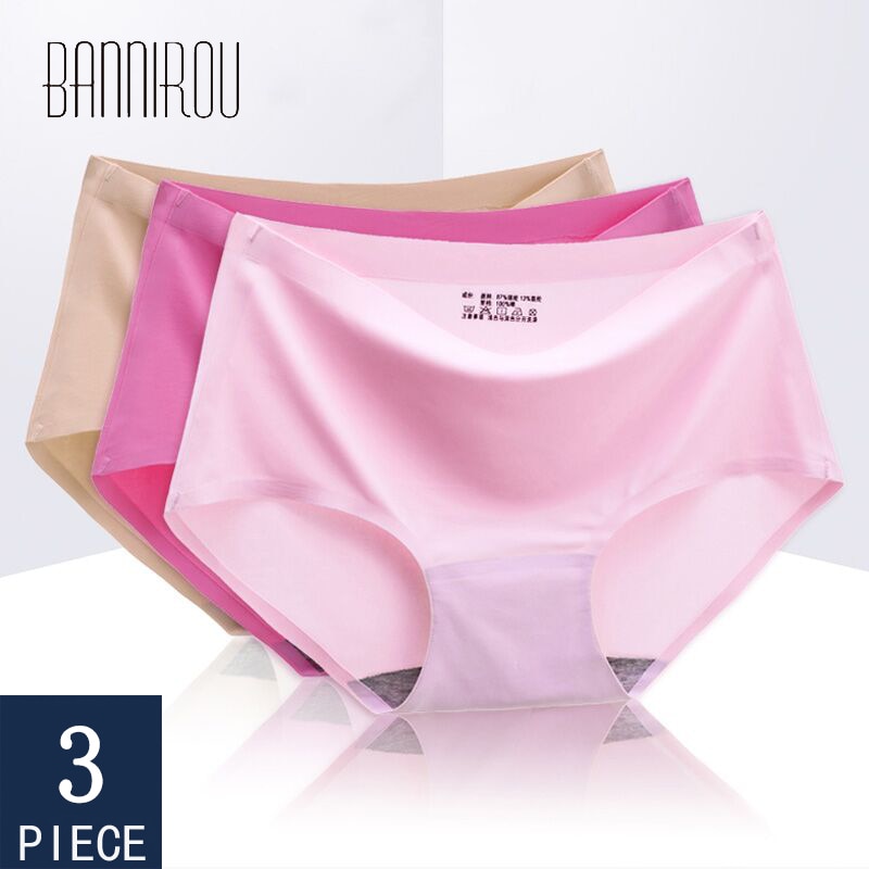 BANNIROU 3 Pcs Seamless Woman Panties Summer Underwear Female Briefs Thin 2021 New Sale Ice Silk Soft Solid Underwear For Woman