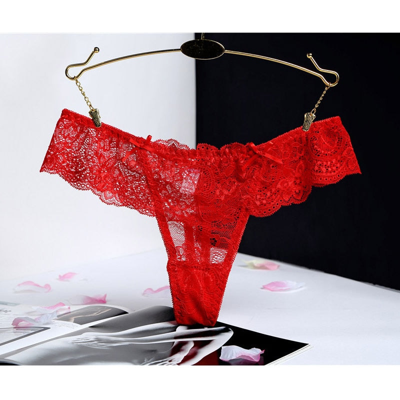 BANNIROU Panties Lace Sexy Female G-String Briefs Lingerie Cotton Wine Red Black White Hot Sale T-back Underwear Woman 1 Pieces
