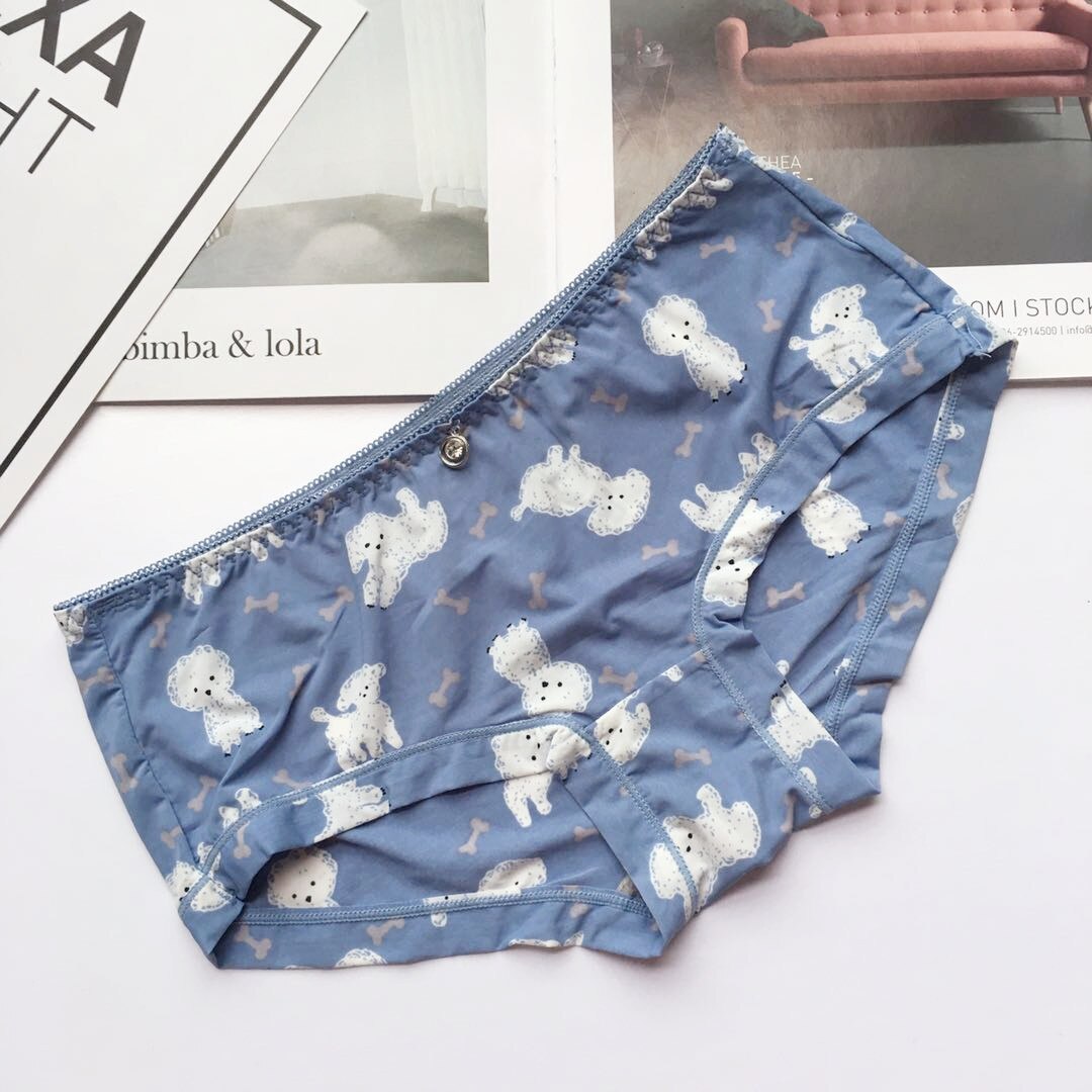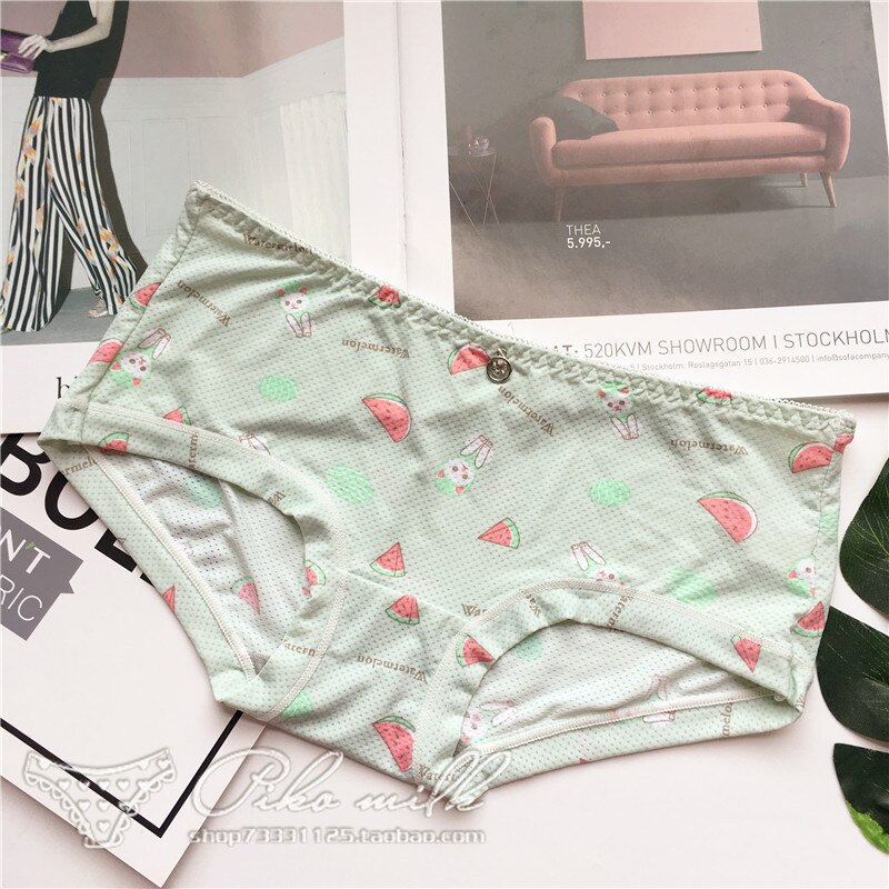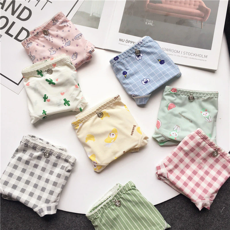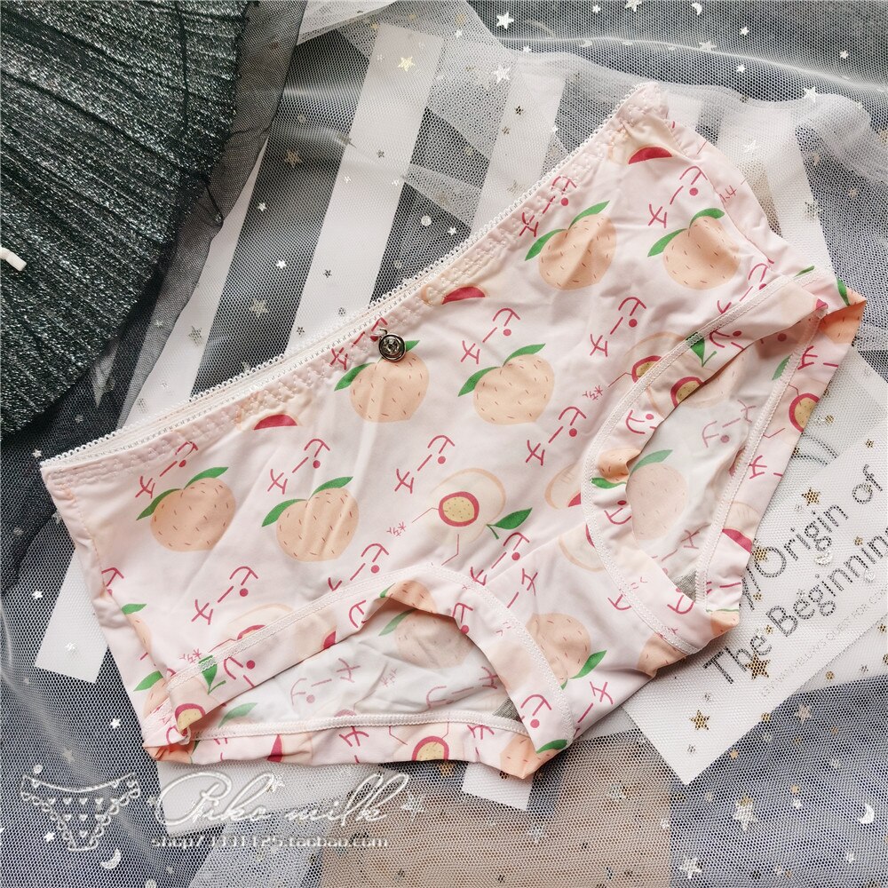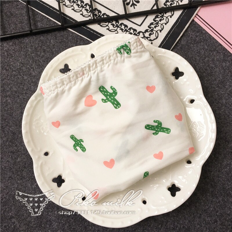 Billionm Colors Ice Silk Printing Cute Students Low Waist Cartoon Plaid Women's New Underwear Lolita Fruit Animal Fashion Panties Bow