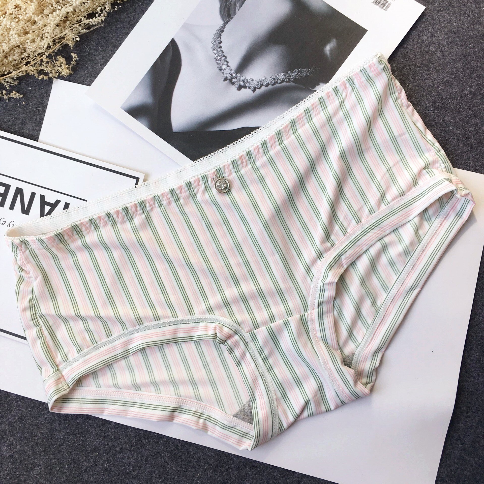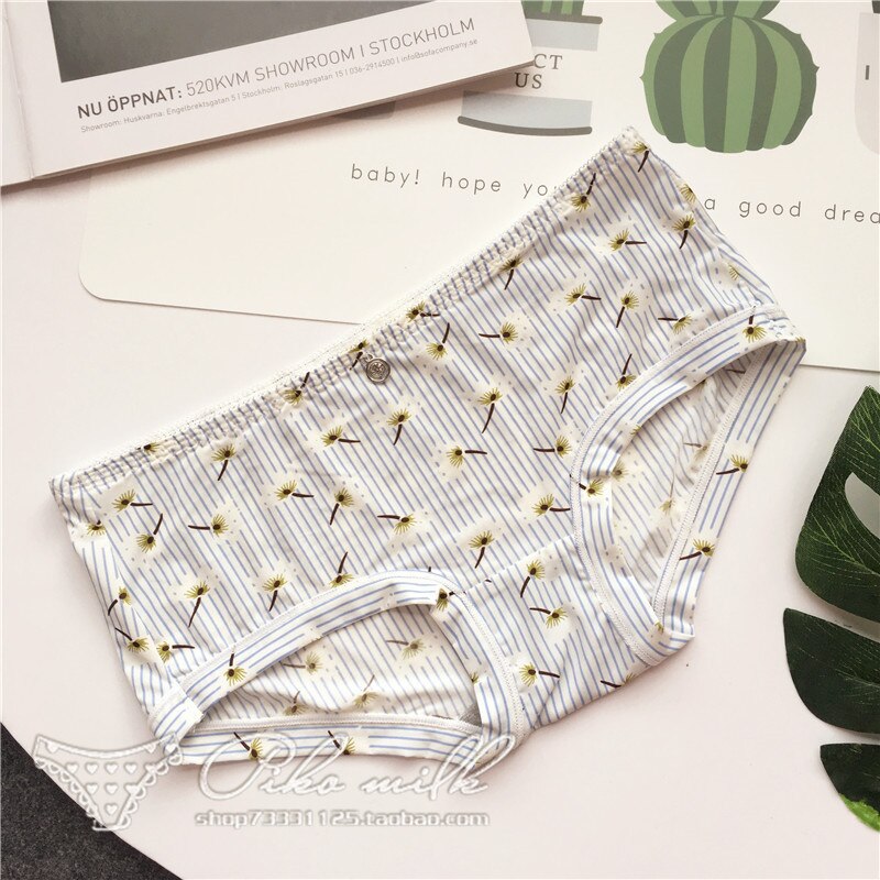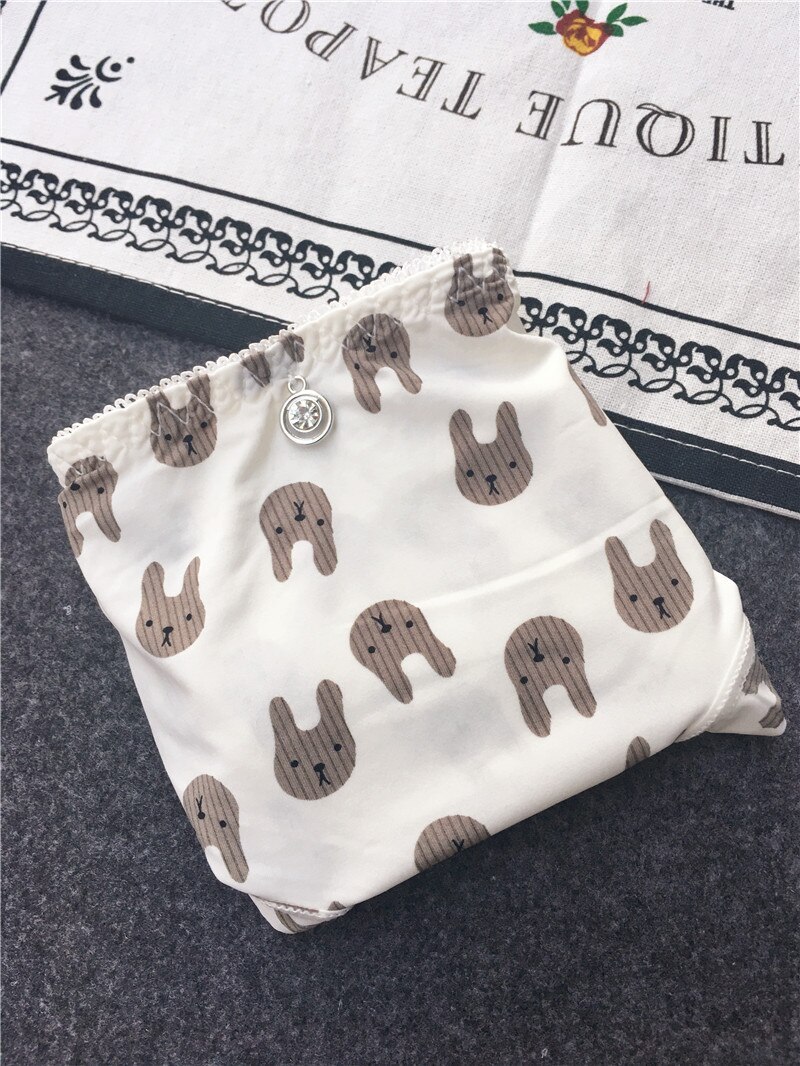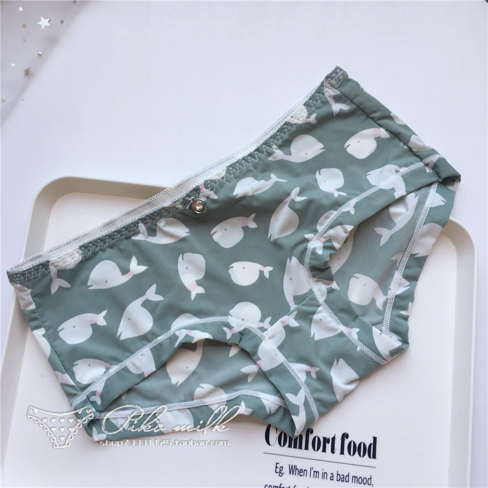 Billionm Colors Ice Silk Printing Cute Students Low Waist Cartoon Plaid Women's New Underwear Lolita Fruit Animal Fashion Panties Bow