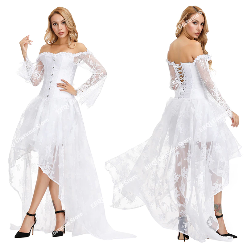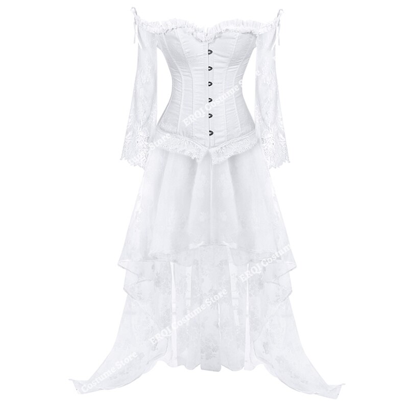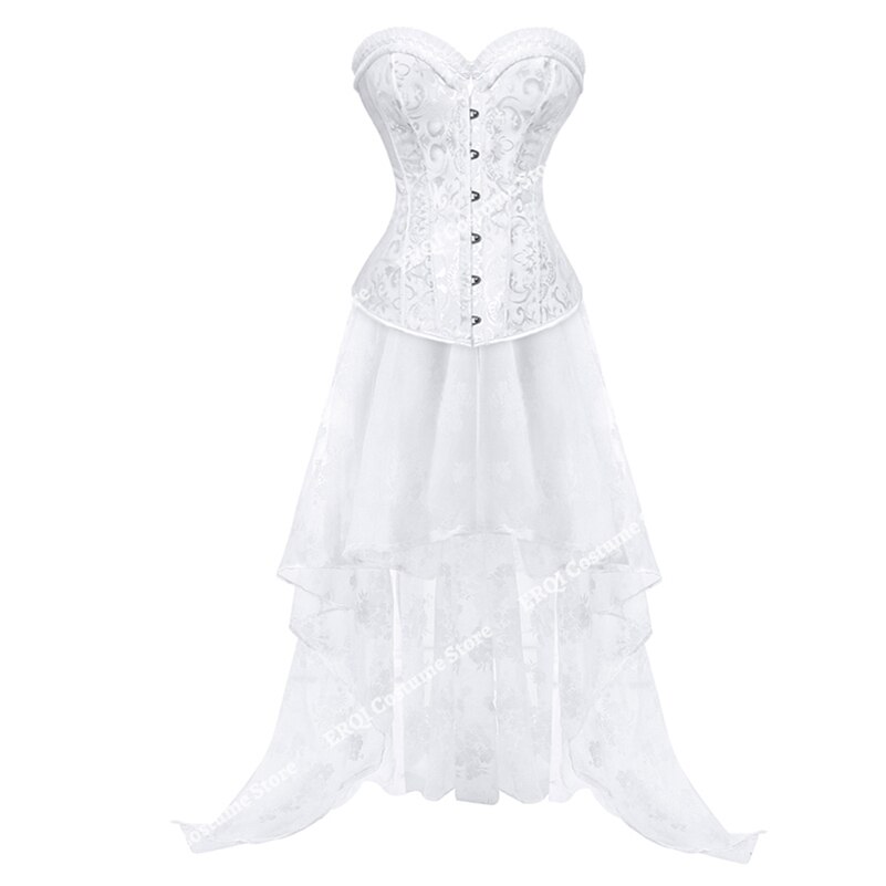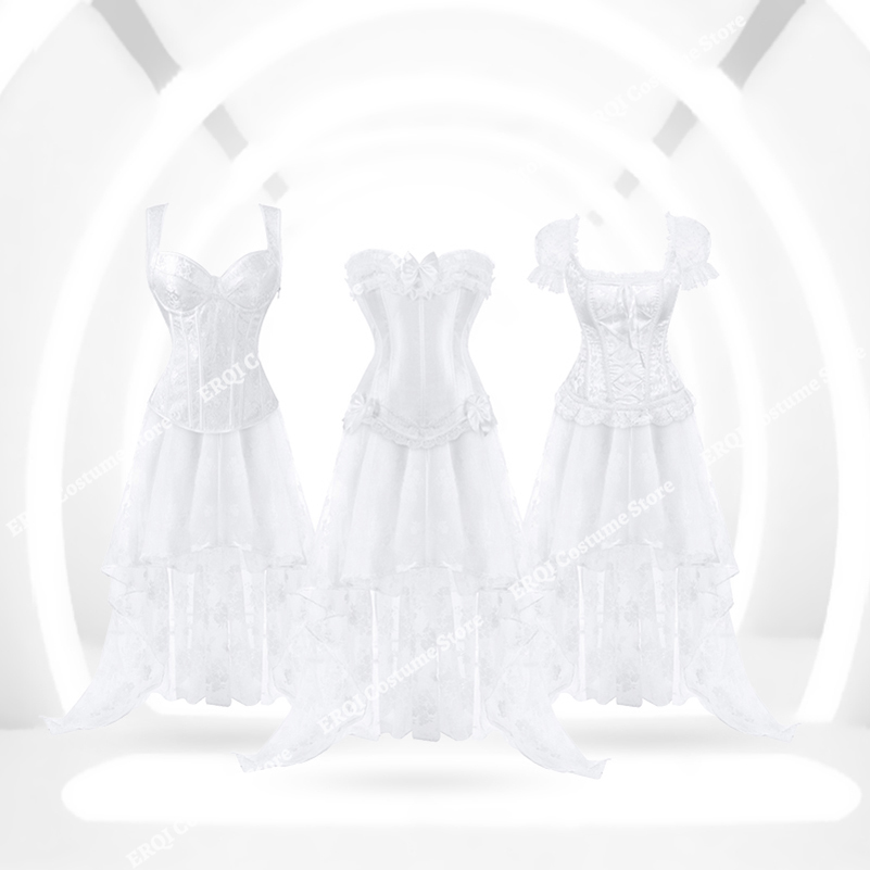 Billionm Corset Dress Lace Floral Body Shape Sexy Corsets Dresses for Women Elegant Halloween Cosplay Costume White Plus Size