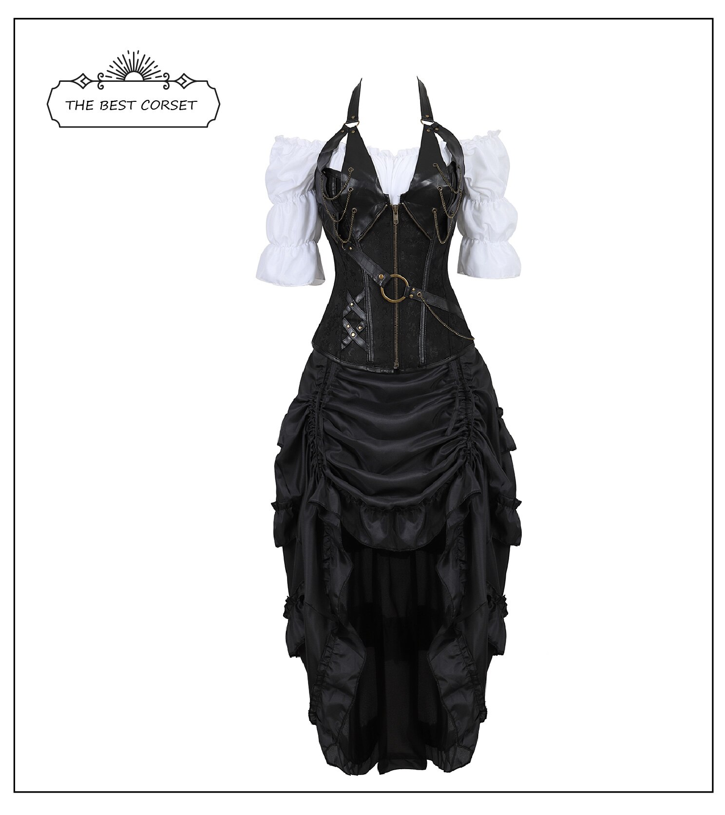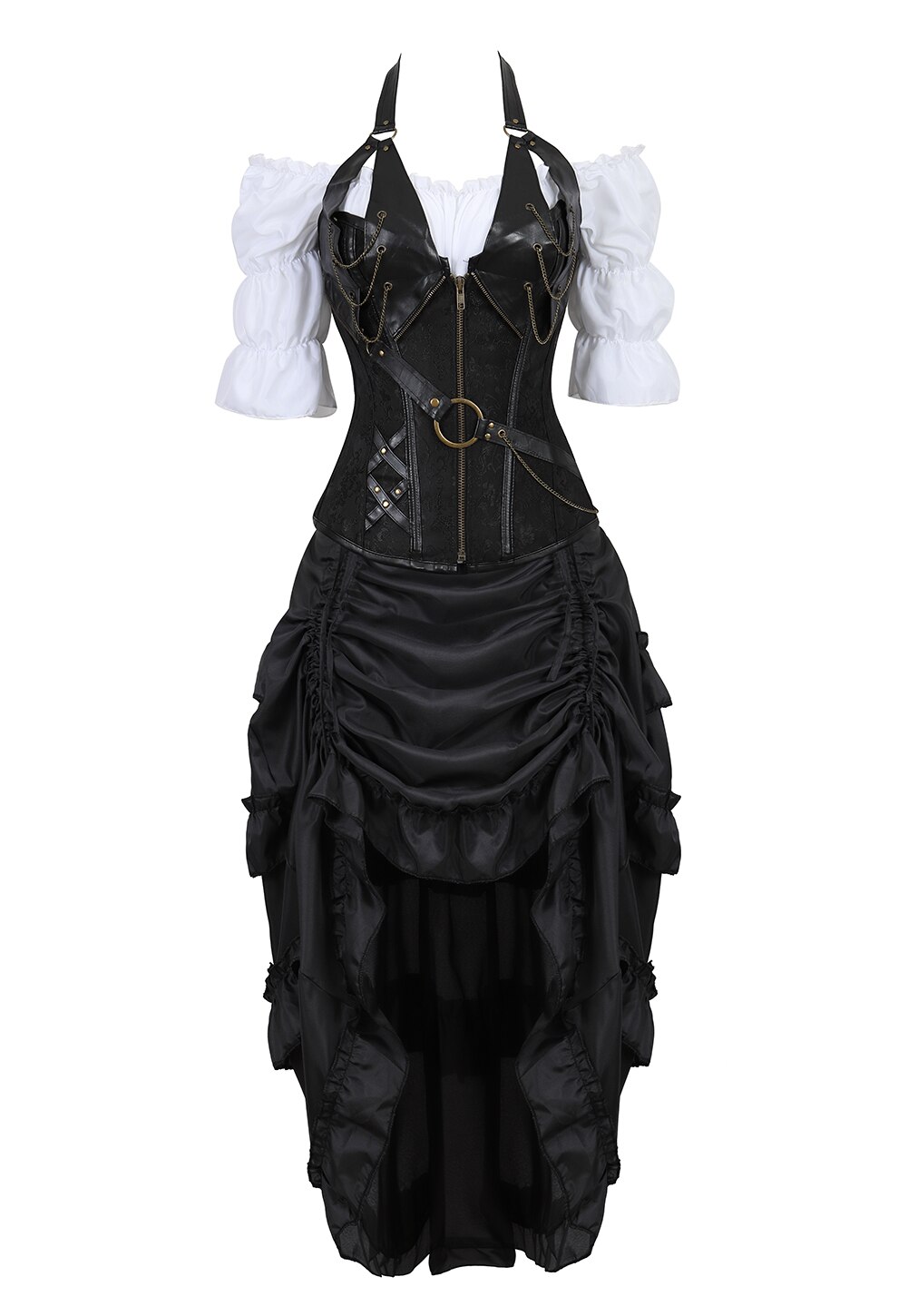 Billionm Corset Dress Vintage skirt Goddess Costume High Low Ruffle Party Pirate Skirts Lolita Medieval Victorian 3-piece Set