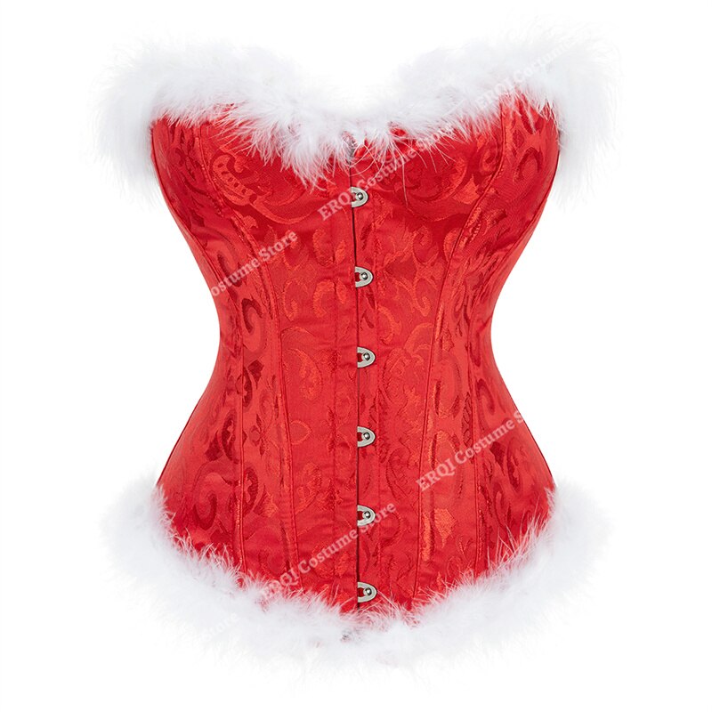 Billionm Corset Sexy Santa Claus Women Corset Plus Size Vintage Christmas Elf Feather Bustier Corset Lingerie