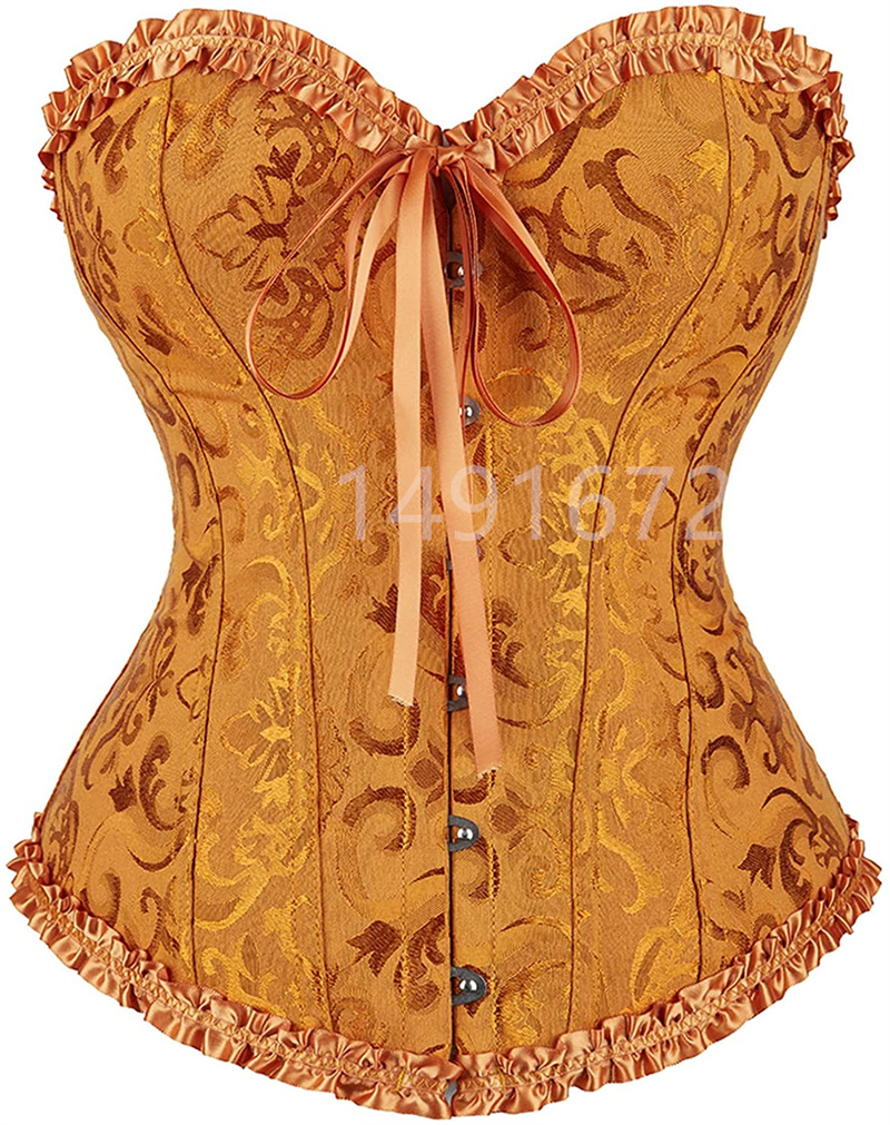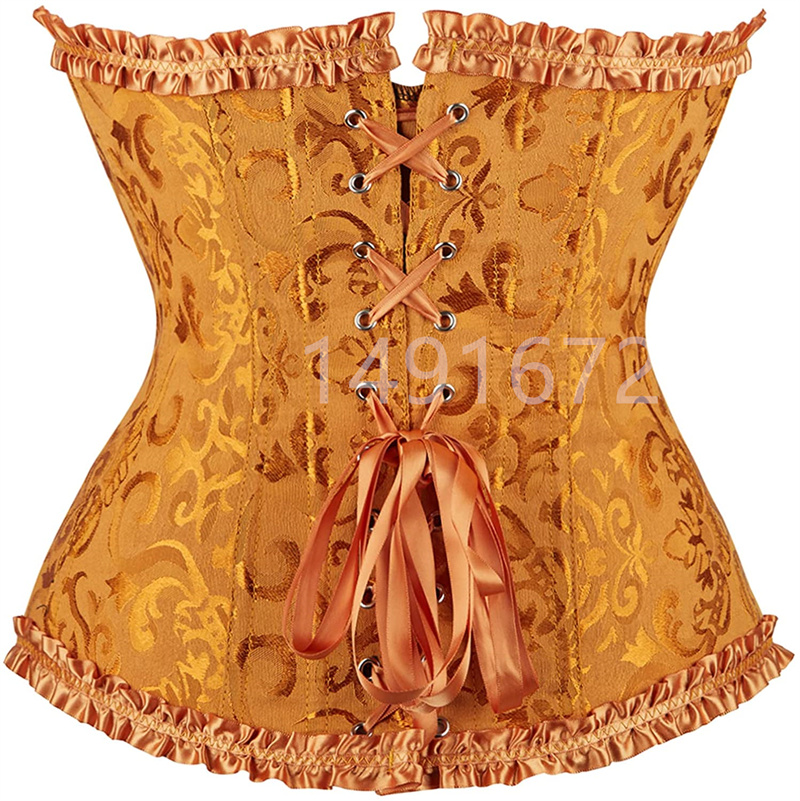 Billionm Corset Top Bustier Yellow Sexy Women's Plus Size Overbust Corselet Blouse Lace up Floral Gothic Brocade Vintage Fashion Medieval
