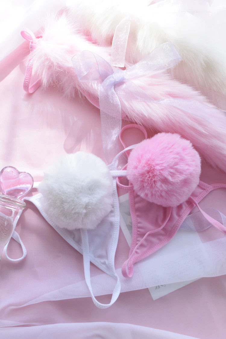 Billionm Cute Lolita Girls Soft Pink Kawaii Rabbit Tail Hair Ball Women Underwear Sexy Pants Erotic Lingerie G String Panties Cosplay
