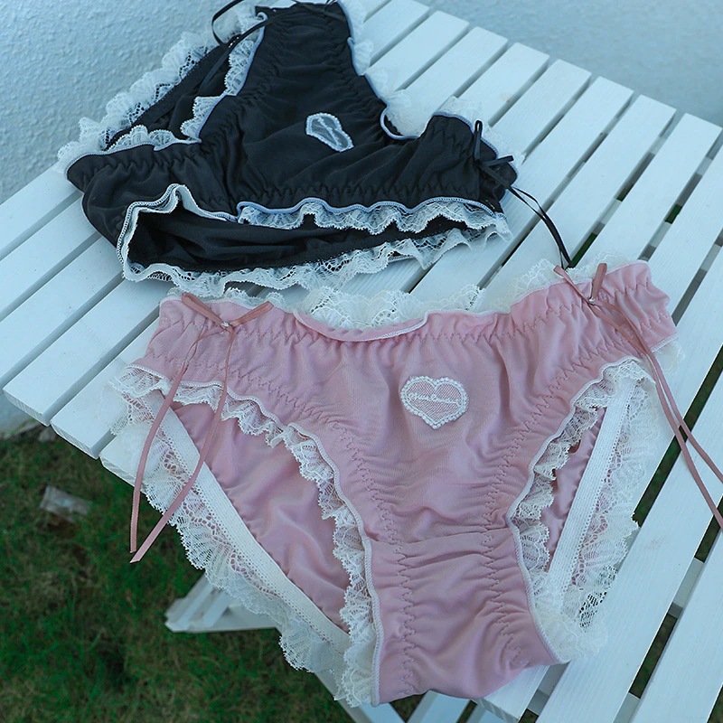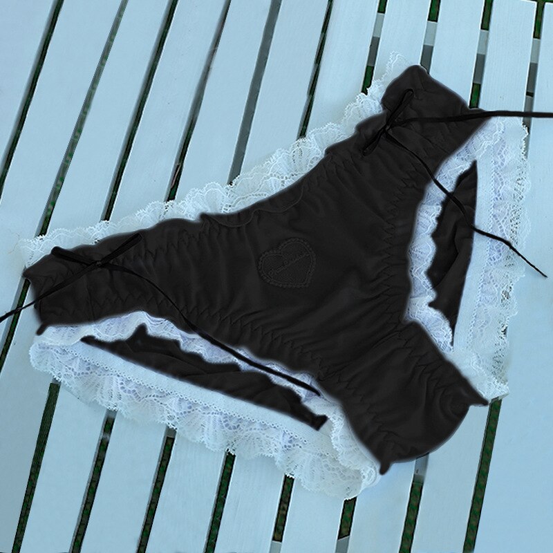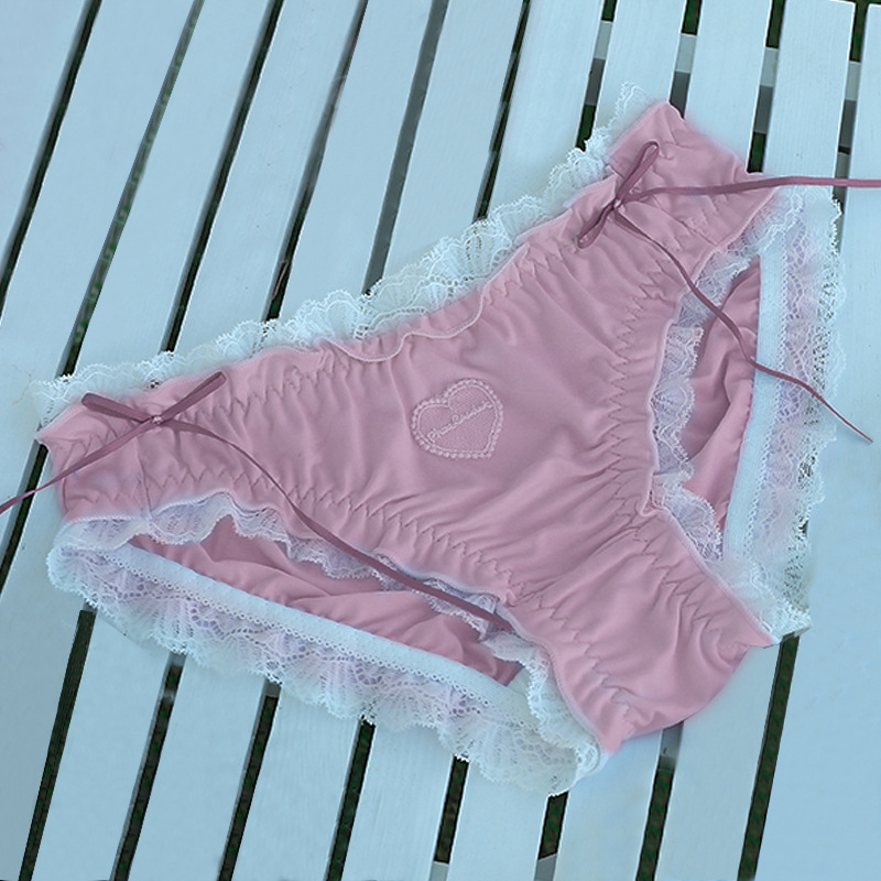 Billionm Desire Japanese Love Lace Underwear Girl Pure Cotton File Cute Sexy Ribbon Mid-waist Briefs Lolita Bow New Breathable Nylon