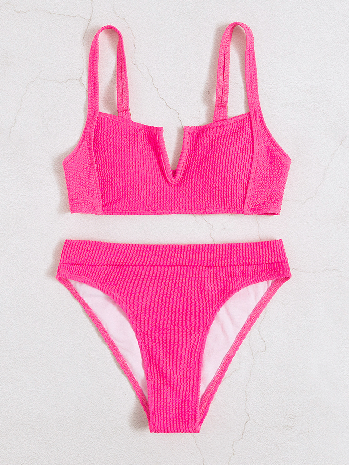 Billionm Ellolace Deep-V Swimwear Pink Bikinis Panty High Woman Swimsuits 2-Pieces Ribbed Bathing Suit Wholesale New Beach Outfits