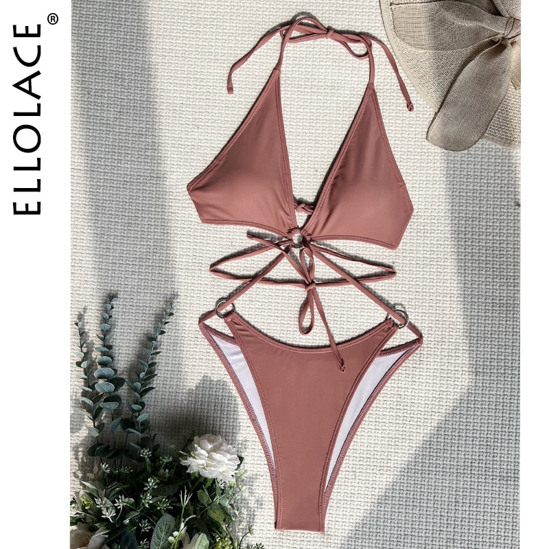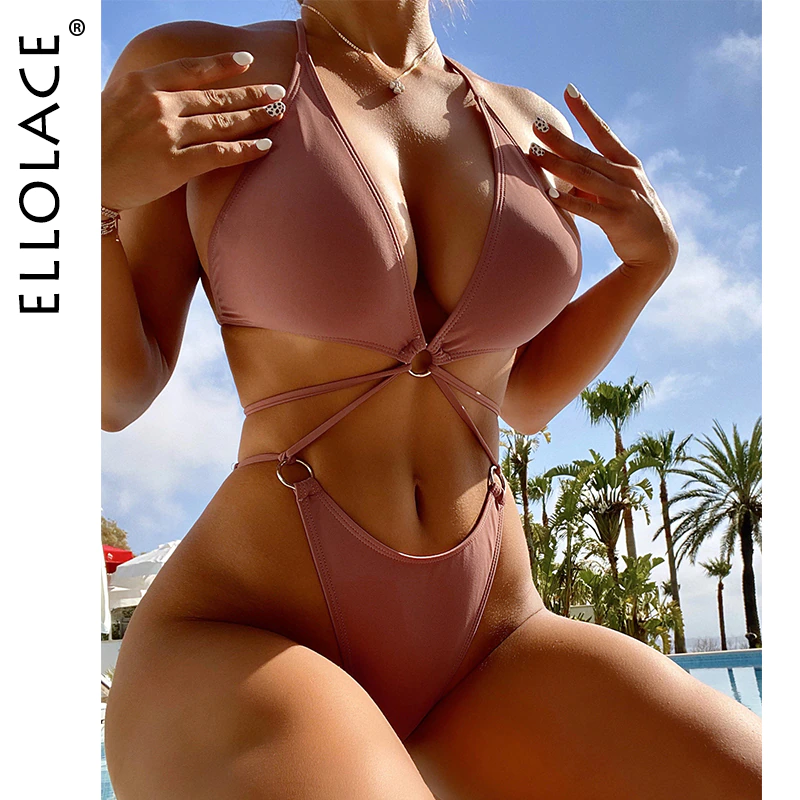 Billionm Ellolace Deep-V Women's Swimsuit Halter One-Piece Swimwear With Girdle Backless Bikini Bathing Suits Ladies Monokini Beach Wear