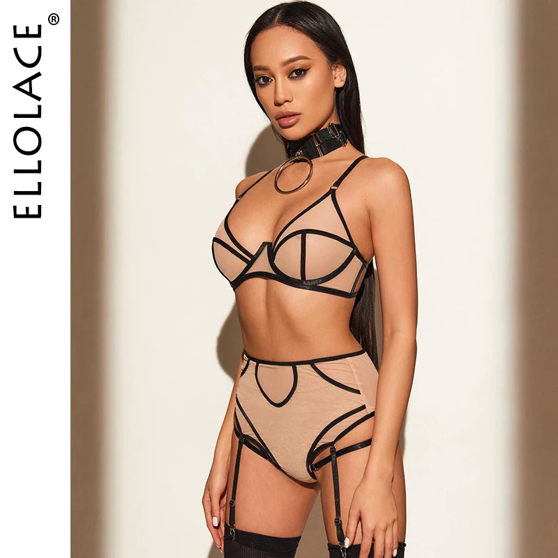 Billionm Ellolace Sexy Lingerie Transparent Woman Nude Underwear Pussy Panties Set Patchwork Seamless Erotic 2-Pieces Outfit