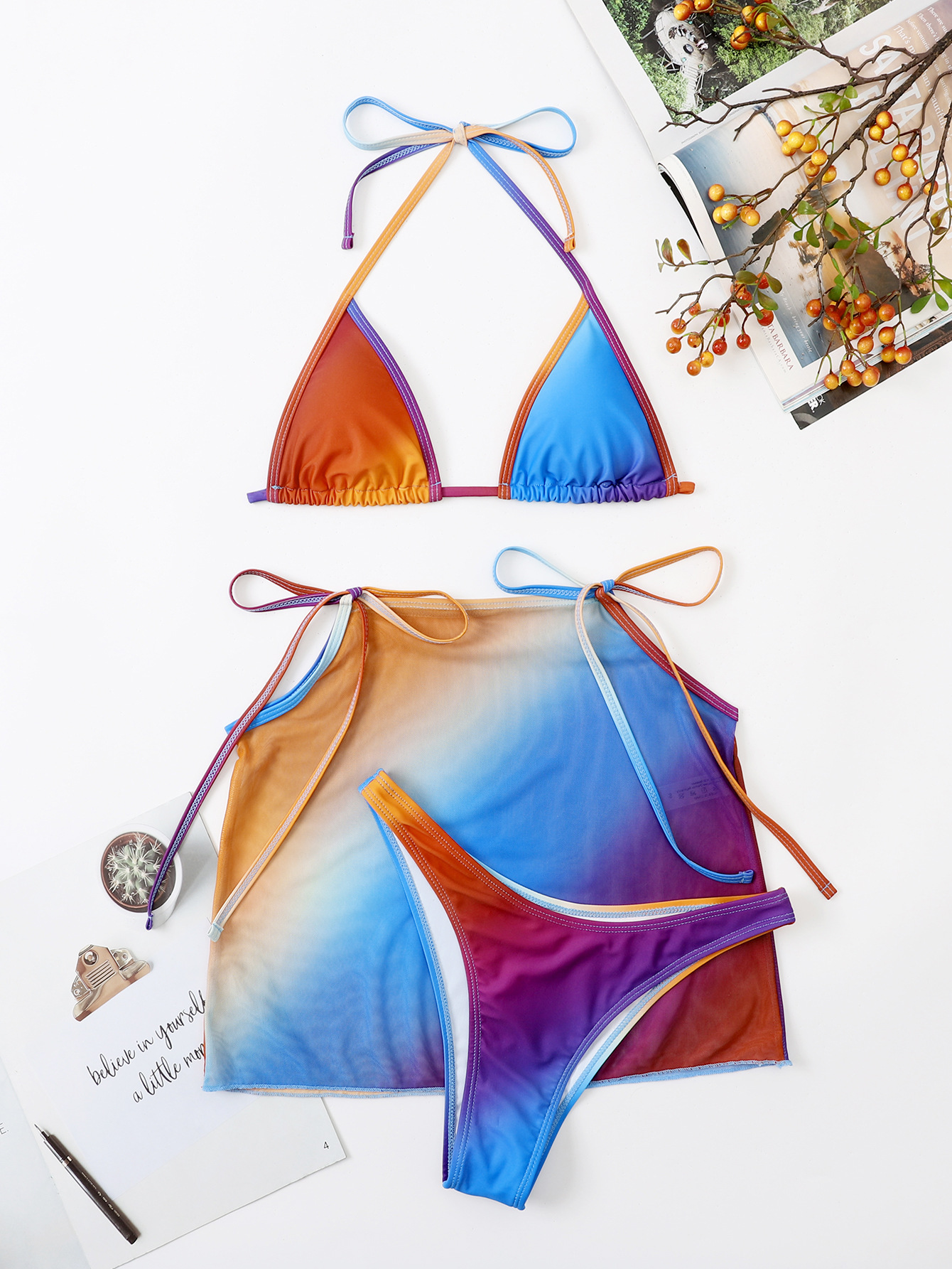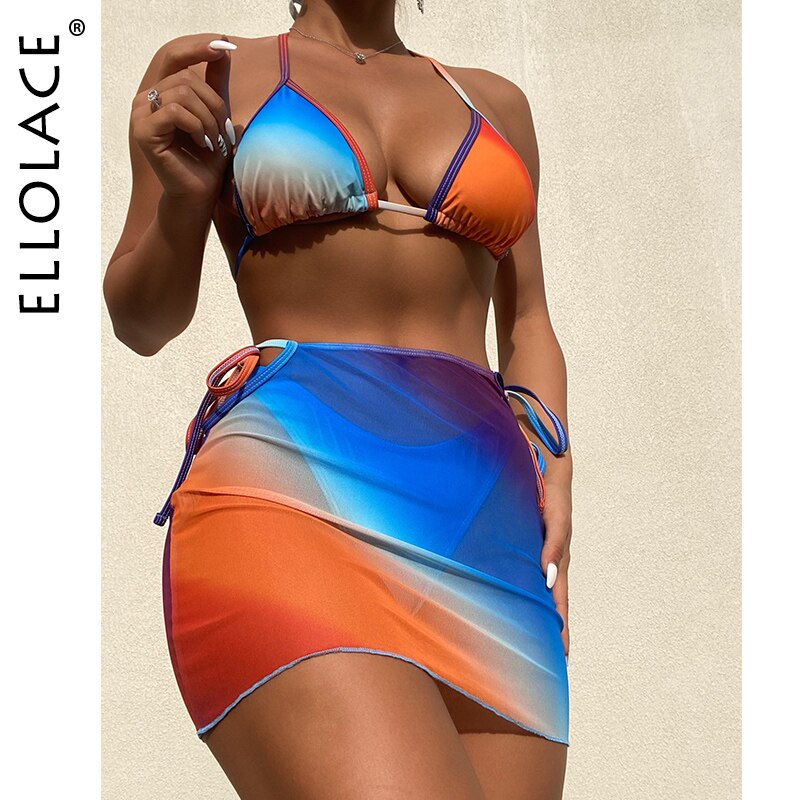 Billionm Ellolace Swimsuit Ladies 2022 Micro Bikini And Cover Up Tie Die Triangle Swimwear Padded Halter Bathing Suit Beach 3-Pieces