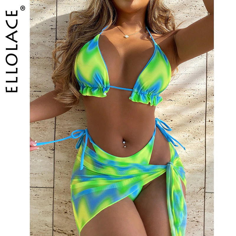 Billionm Ellolace Tie Die Bright Green Women's Swimsuit And Cover Up Micro Bikini Print Swimwear Stylish Feminine Bikinis Bathing Suit