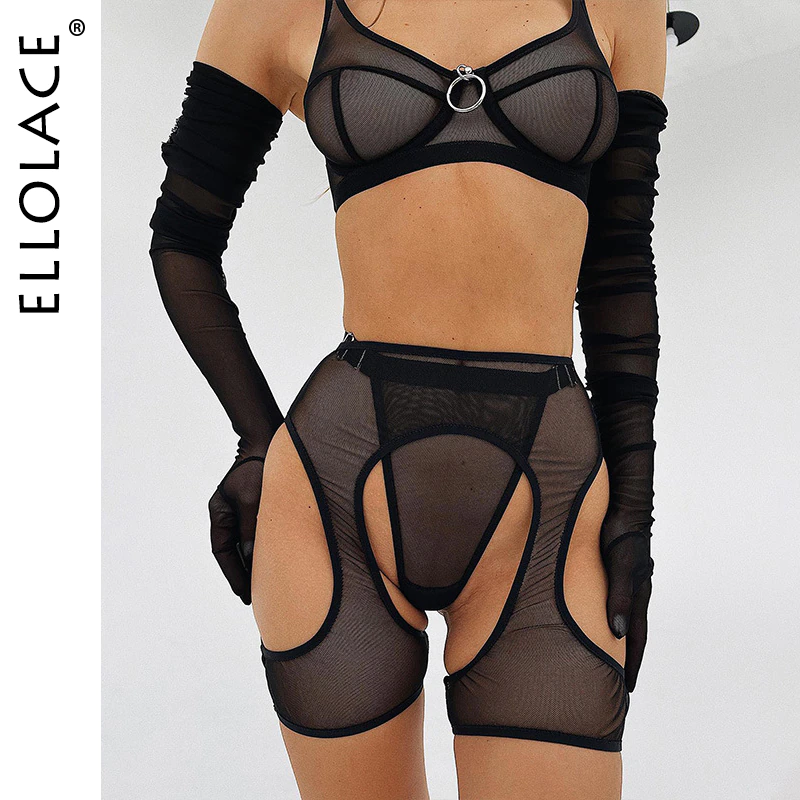 Billionm Erotic Open Crotchless Sexy Lingerie Bra Sets For Women Garter Belt 3-Piece Delicate Underwear Seamless Exotic Outfits
