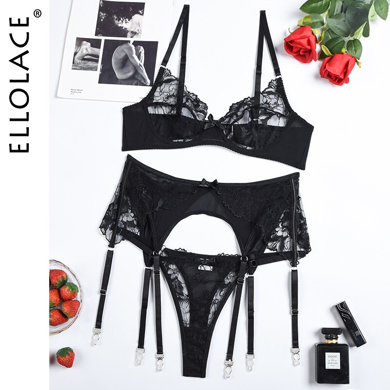 Billionm Fancy Erotic Lingerie For Full 3-PCS Transparent Bra Delicate Underwear Sexy See Through Outfit Luxury Lace Intimate