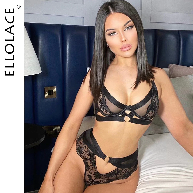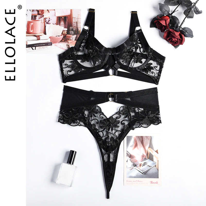 Billionm Fancy Lingerie Embroidery Luxury Lace Underwear Set Women 2 Piece Transparent Bra And Thongs Sexy Intimate Exotic Sets